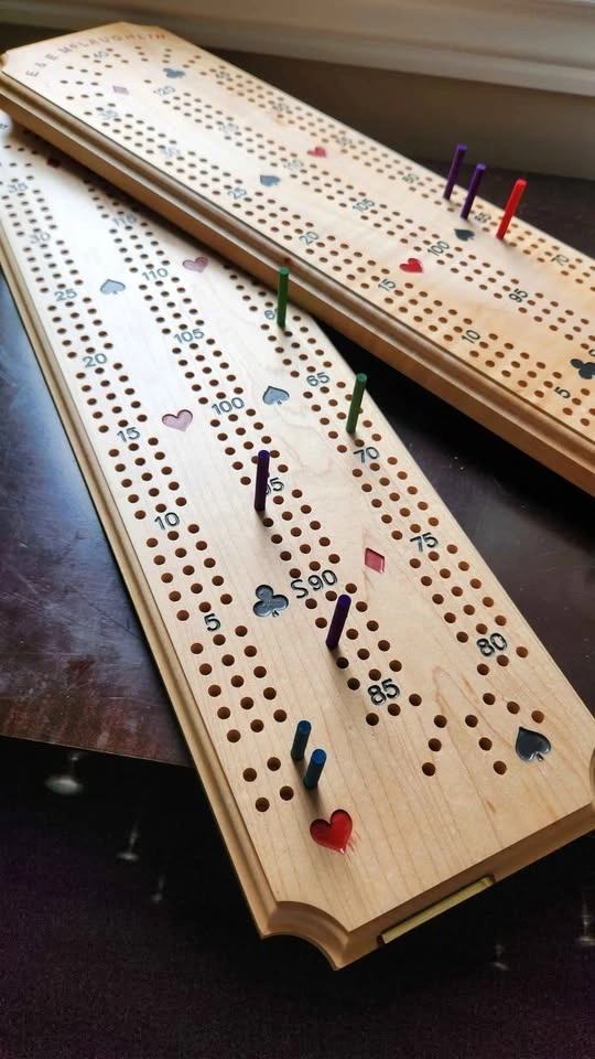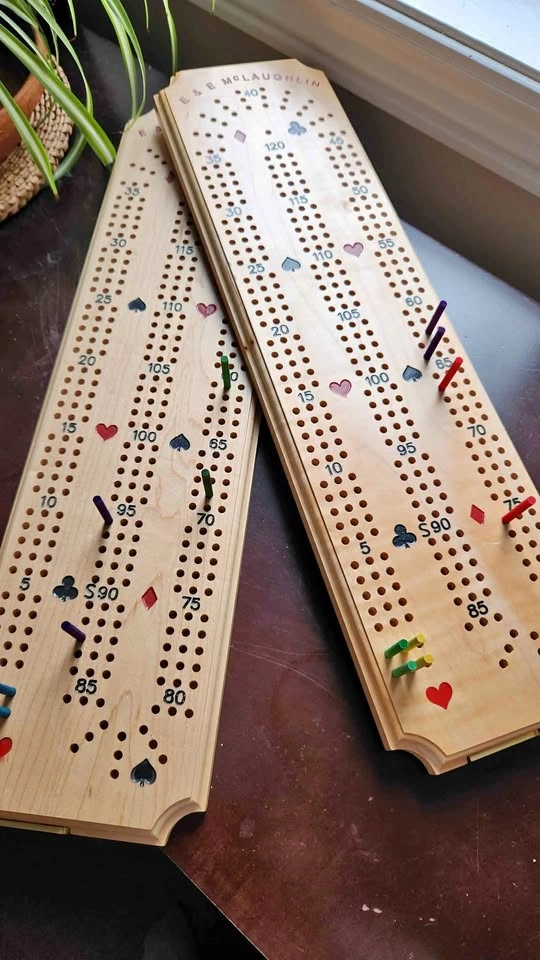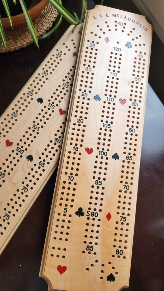 Beautiful extra large wooden E & E McLaughlin cribbage boards, 22" x 6". Mint condition. They don't have the original pegs but there are pegs with it. Boards like this usually retail for about $80 a piece. Asking $50 each or both for $80. Pickup in Lisle or can meet in Alliston or Oakville.