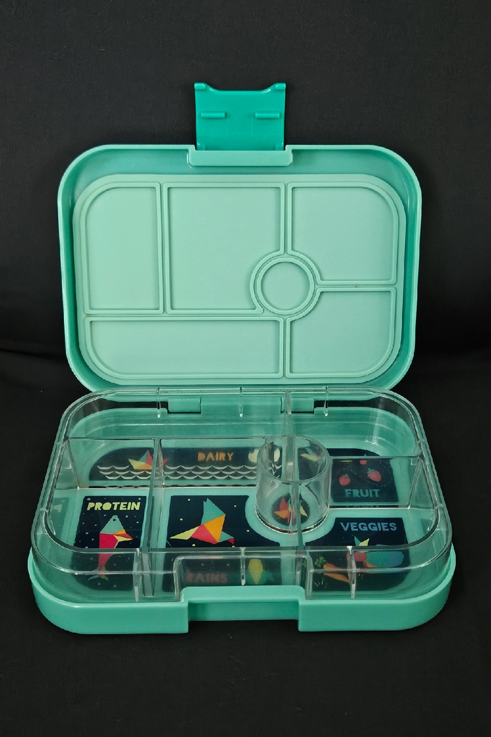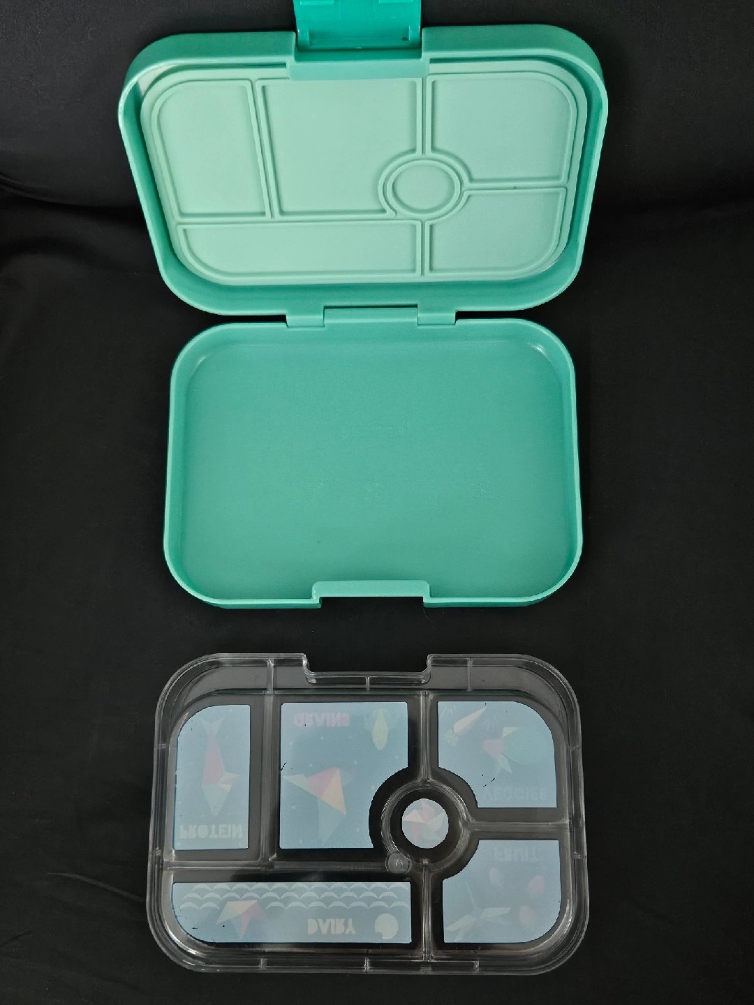 Large Yumbox Lunchbox (6 compartment). In very good/excellent used condition. You can very slightly see where we had a decal of an airplane on the front because that area was protected from regular wear. Milton pick up, cash only, no holds, price is as posted.