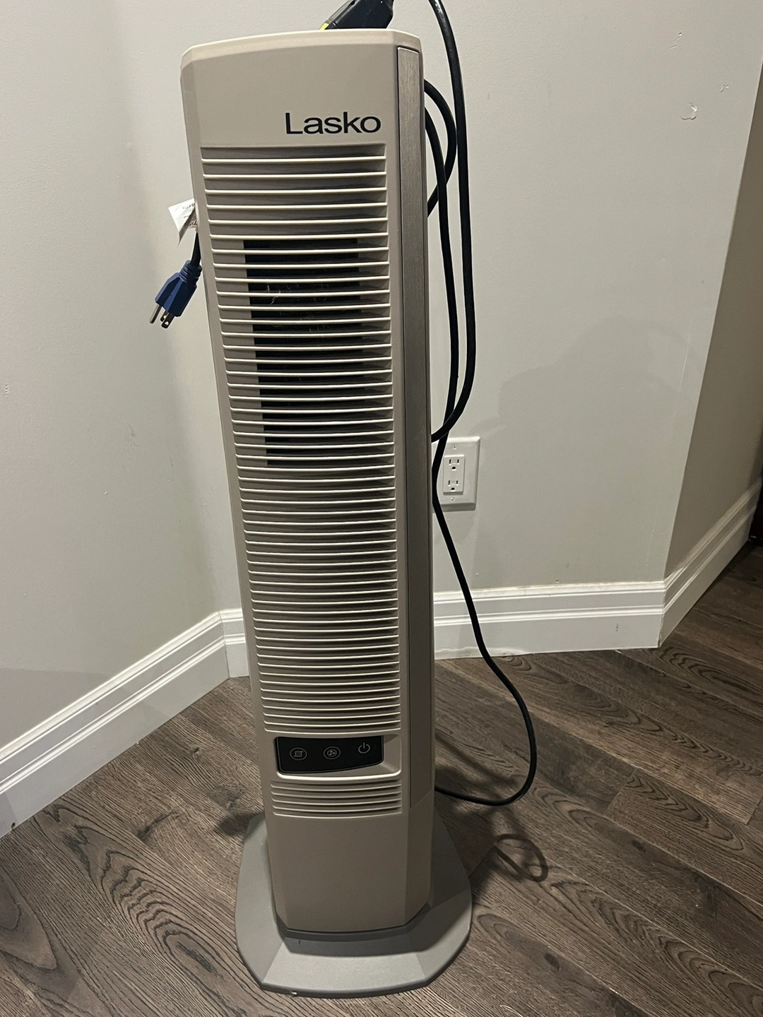 Tall tower fan. Oscillating. Good condition. Includes power cord.