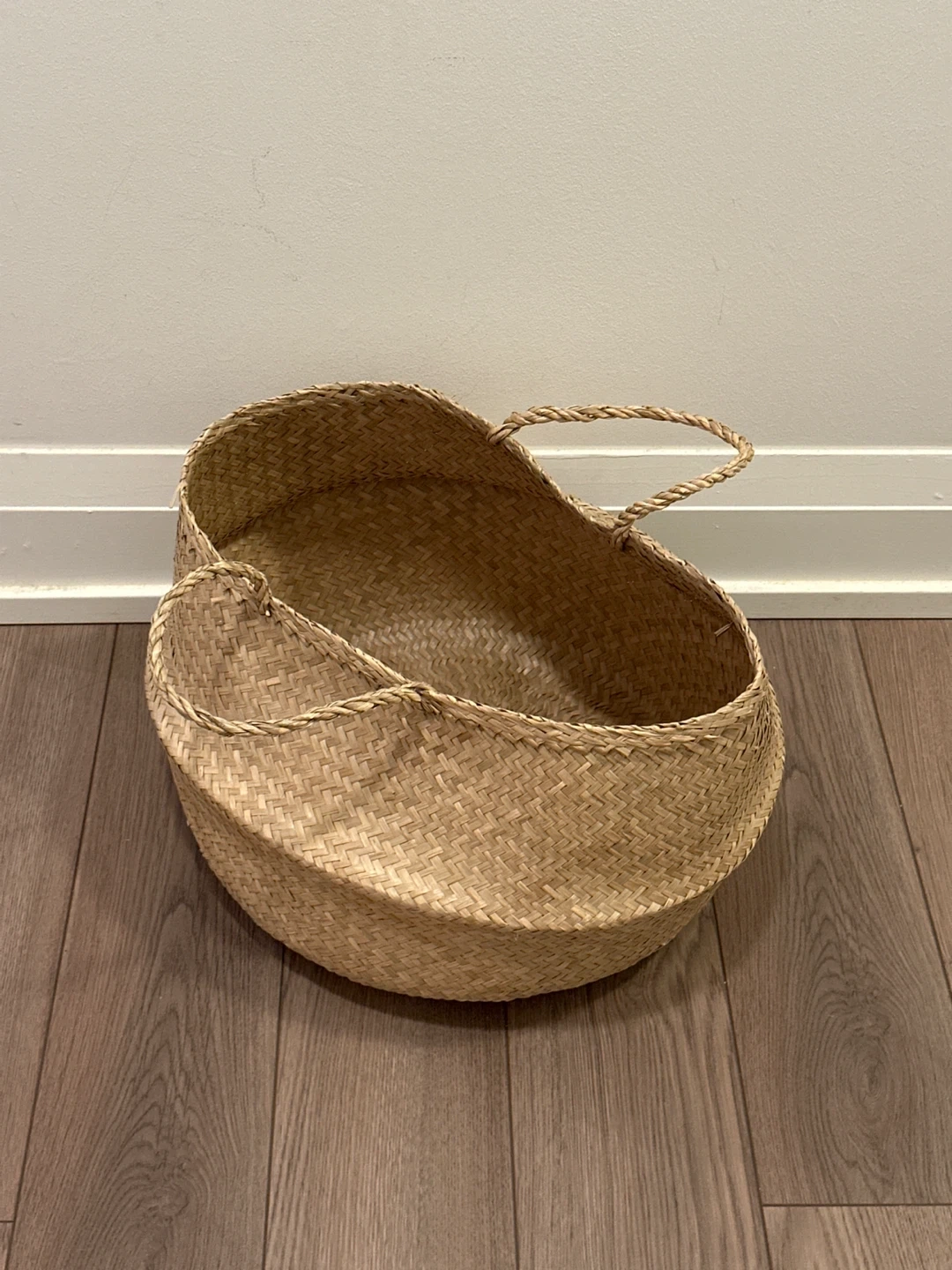 466Selling a lovely woven seagrass basket! It's in great condition and would be perfect for storage or as a decorative piece in your home. The basket has sturdy handles for easy carrying