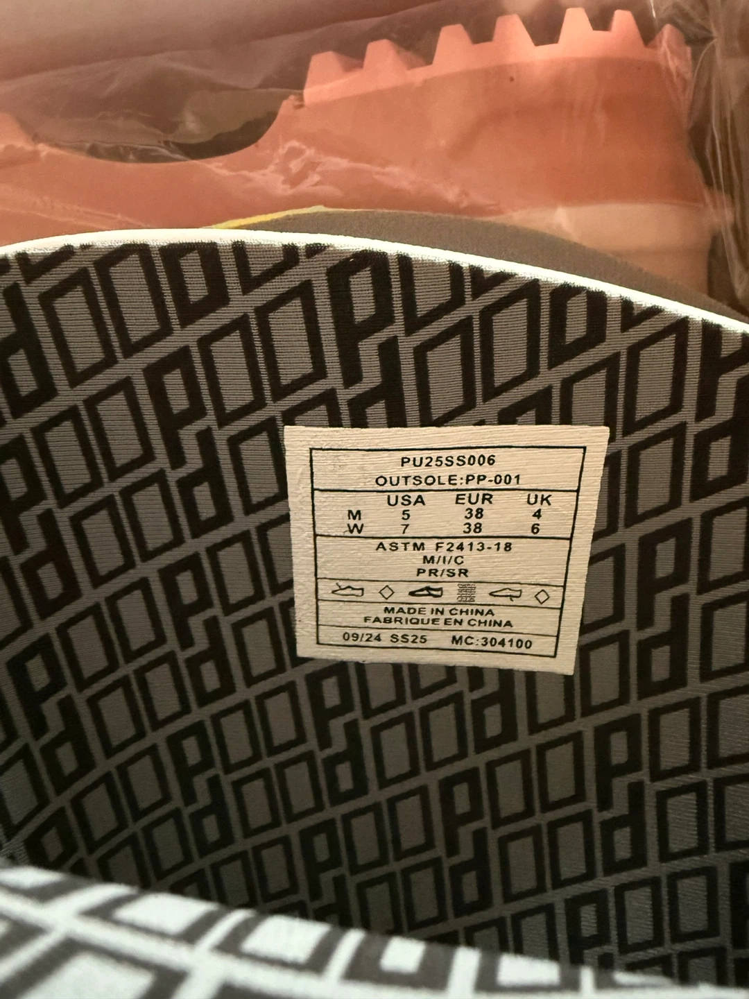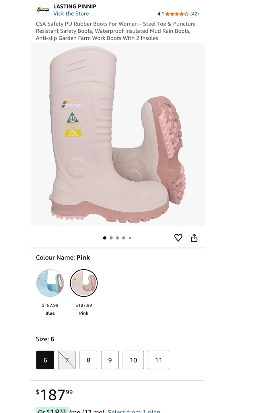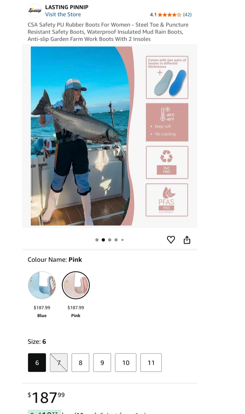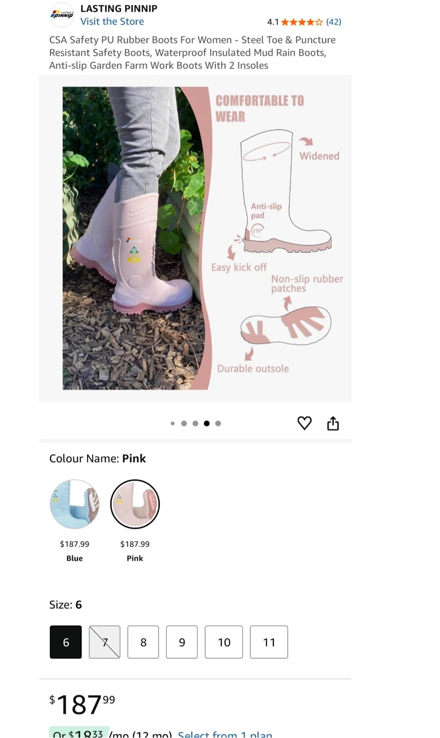 73Selling a pair of Lasting Pinnip safety rubber boots in pink, size 7These boots are steel-toe and puncture-resistant, making them perfect for work around the yard or on the farm. They're waterproof and insulated, so your feet will stay dry and warm. They also come with two pairs of insoles for extra comfort