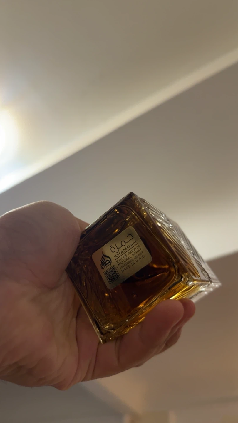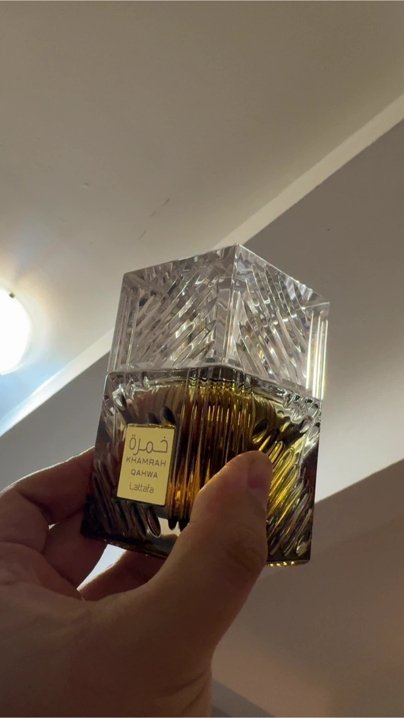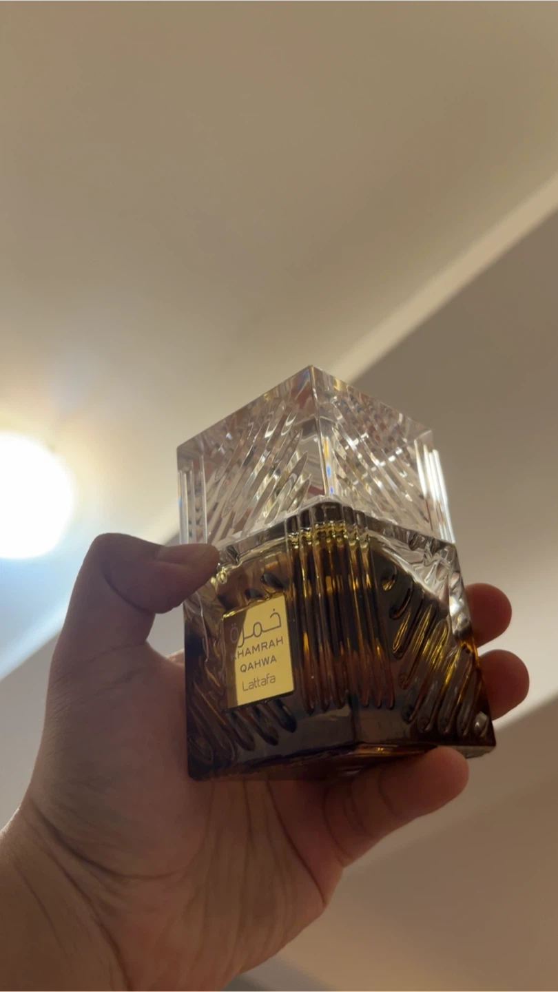 Selling Lattafa Khamrah Qahwa, a lovely perfume. It's in great condition and ready for a new home! The bottle is a beautiful design and would look great on any dresser or vanity