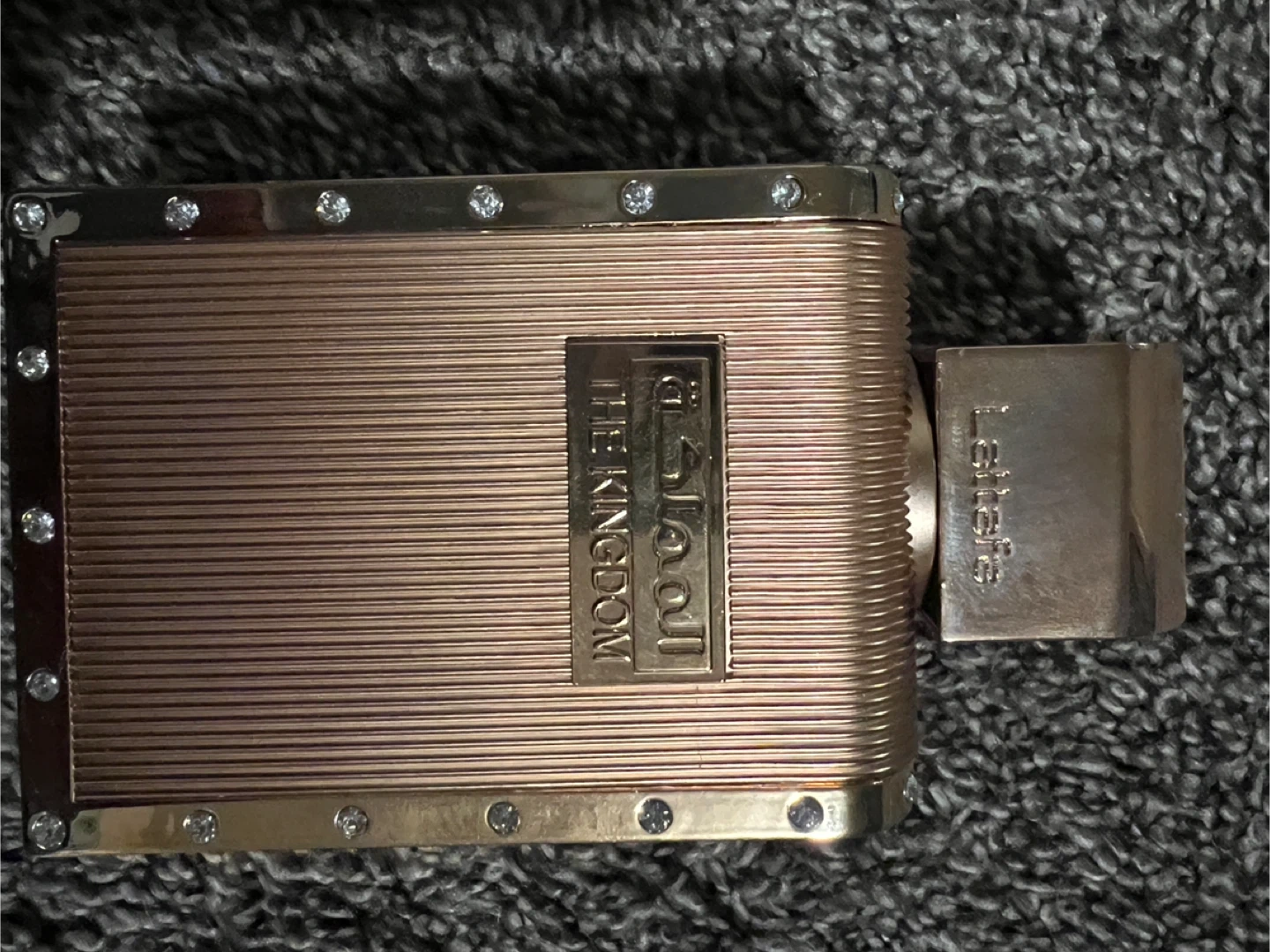 Selling a bottle of Lattafa's The Kingdom cologne. It has a unique and elegant design. The bottle is in great condition and it’s full.