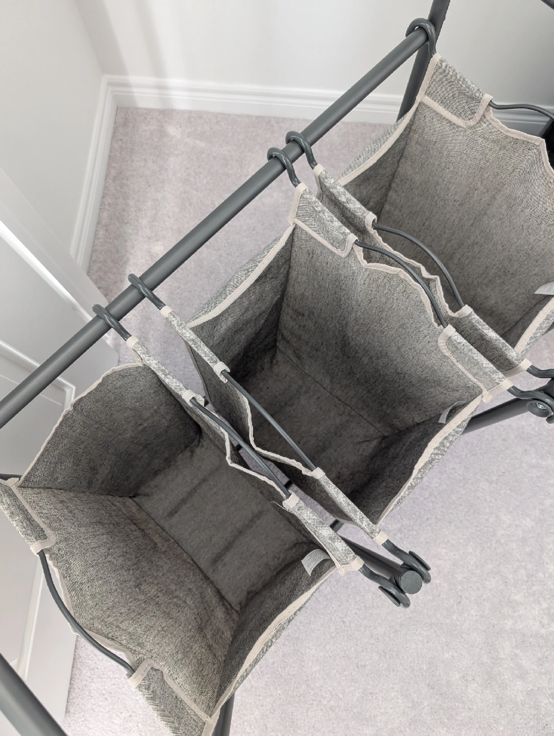 Laundry hamper/basket with three sections to sort. It's great for keeping your whites, darks, and colours separate. It's in great condition.