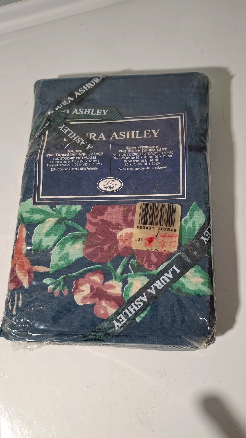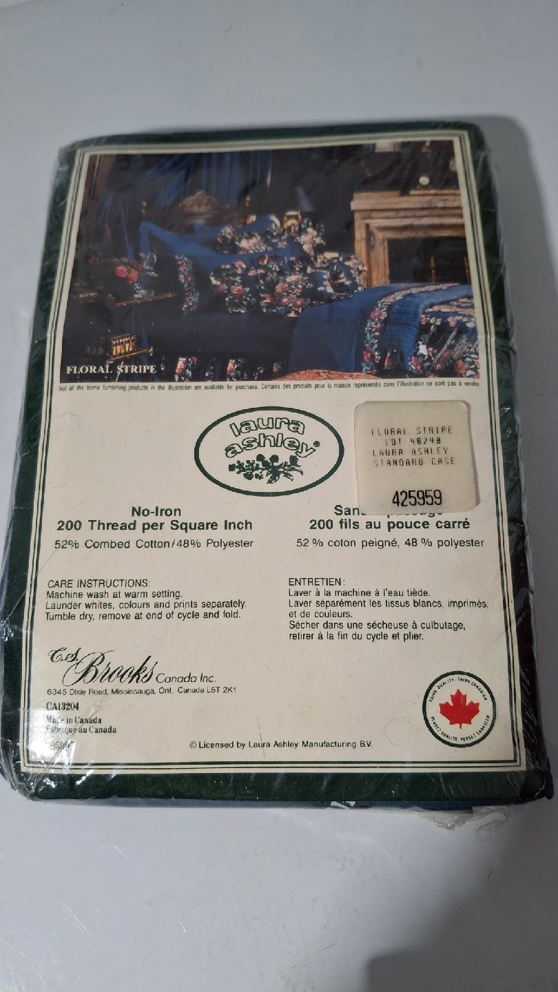 1000+I'm selling a set of brand new Laura Ashley Floral Stripe standard pillowcases! They are no-iron and made of 52% combed cotton and 48% polyester. These pillowcases have 200 threads per square inch. The packaging is still sealed!