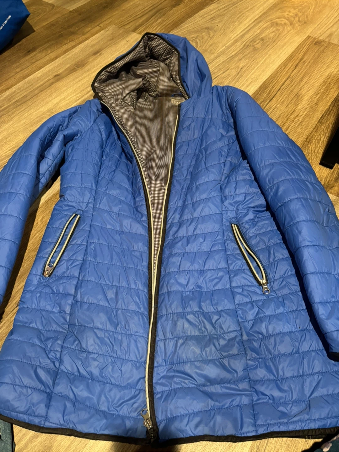 65Cozy Laura puffer jacket in a vibrant blue colour! It's a size medium and perfect for those cooler days. The jacket features a stylish quilted design and a comfortable fit. It's in great condition and ready for a new home