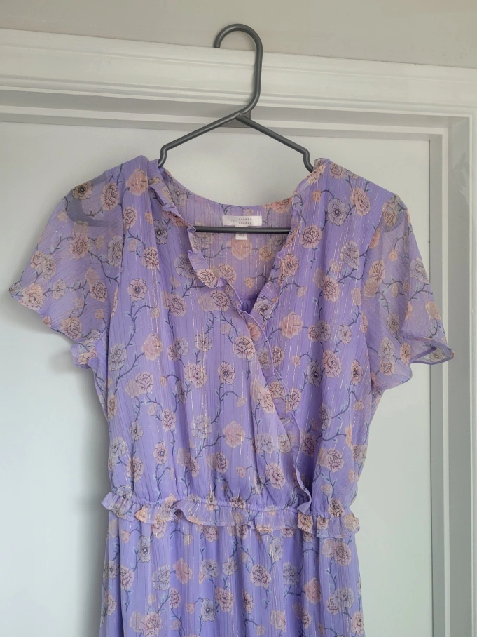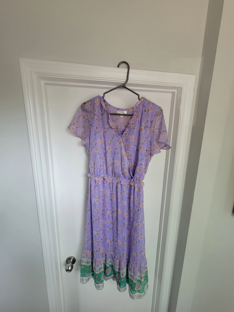 179Gorgeous dress with a wrap design. Features short sleeves and a midi-length skirt. Perfect for those summer days, especially when you are looking for a relaxing outfit.