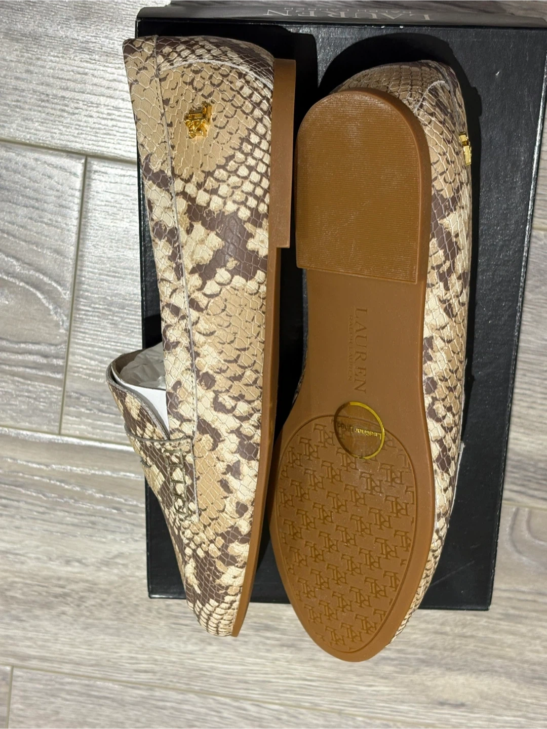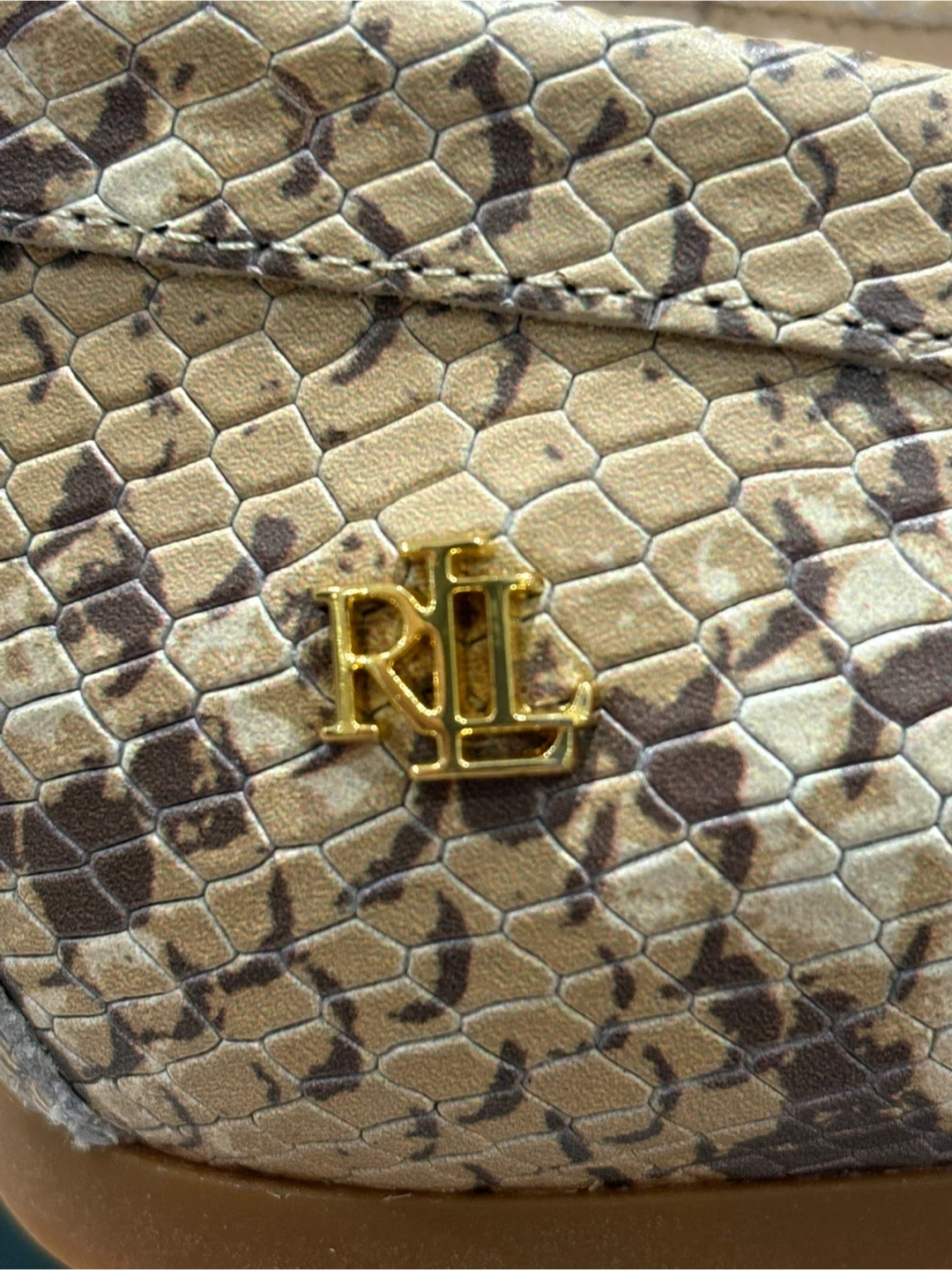 17Size 8 but fits loose High quality faux snakeskin Ralph Lauren badging Brand new unused Womens