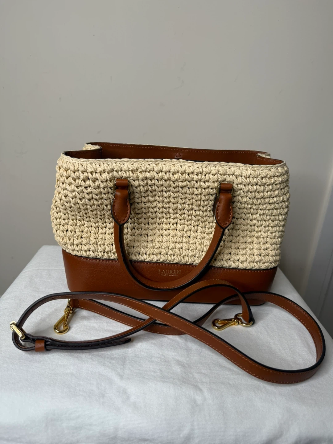 12Selling a lovely Lauren Ralph Lauren handbag! It features a straw body with brown leather accents. The bag comes with a detachable shoulder strap, so you can carry it as a tote or wear it as a crossbody. It's in perfect condition and ready for a new home