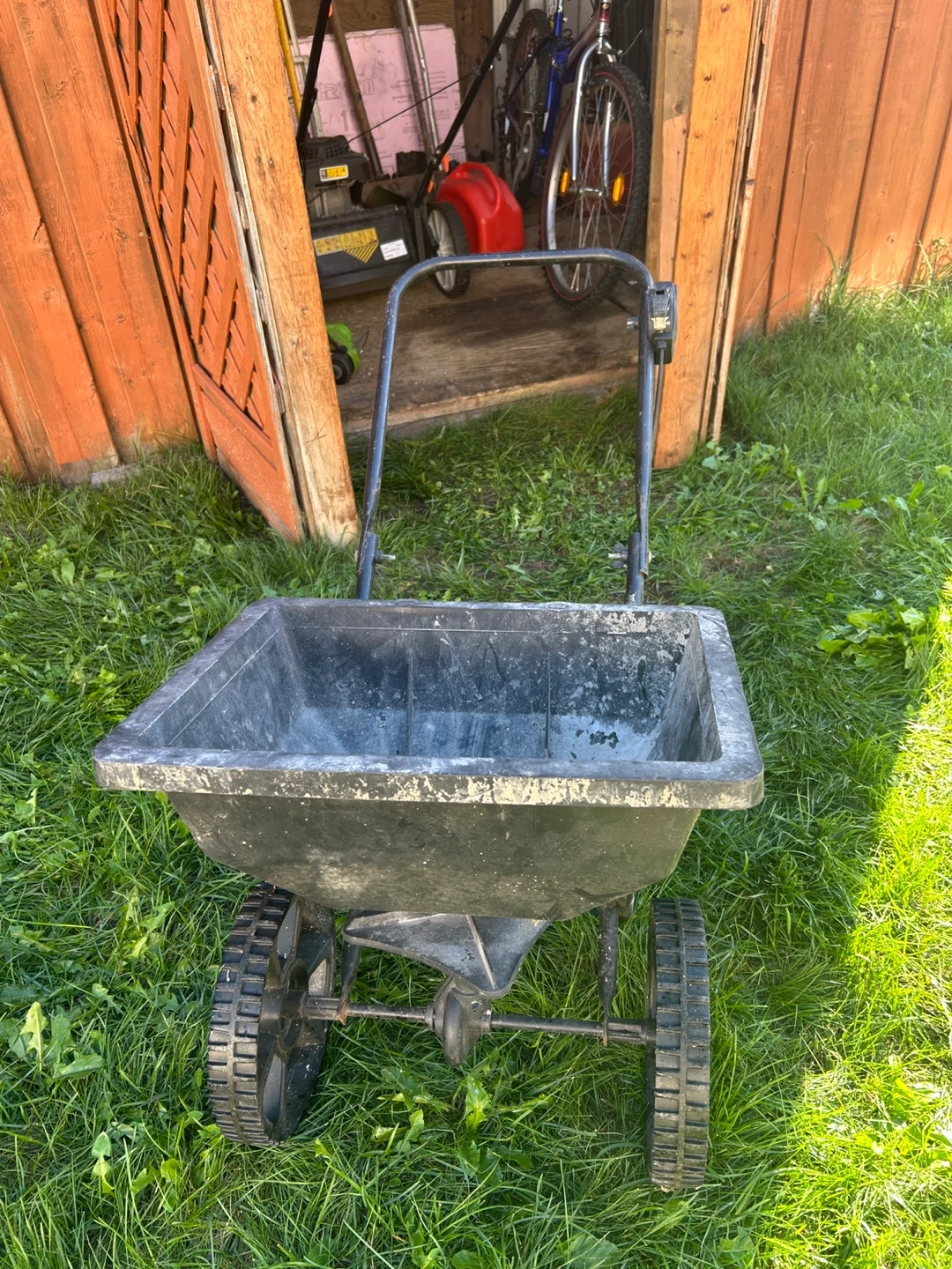 Selling a lawn fertilizer spreader. It's in used condition, but still works great for spreading fertilizer or seeds in your yard. Perfect for getting your lawn ready for the growing season! Pls text 4164027666