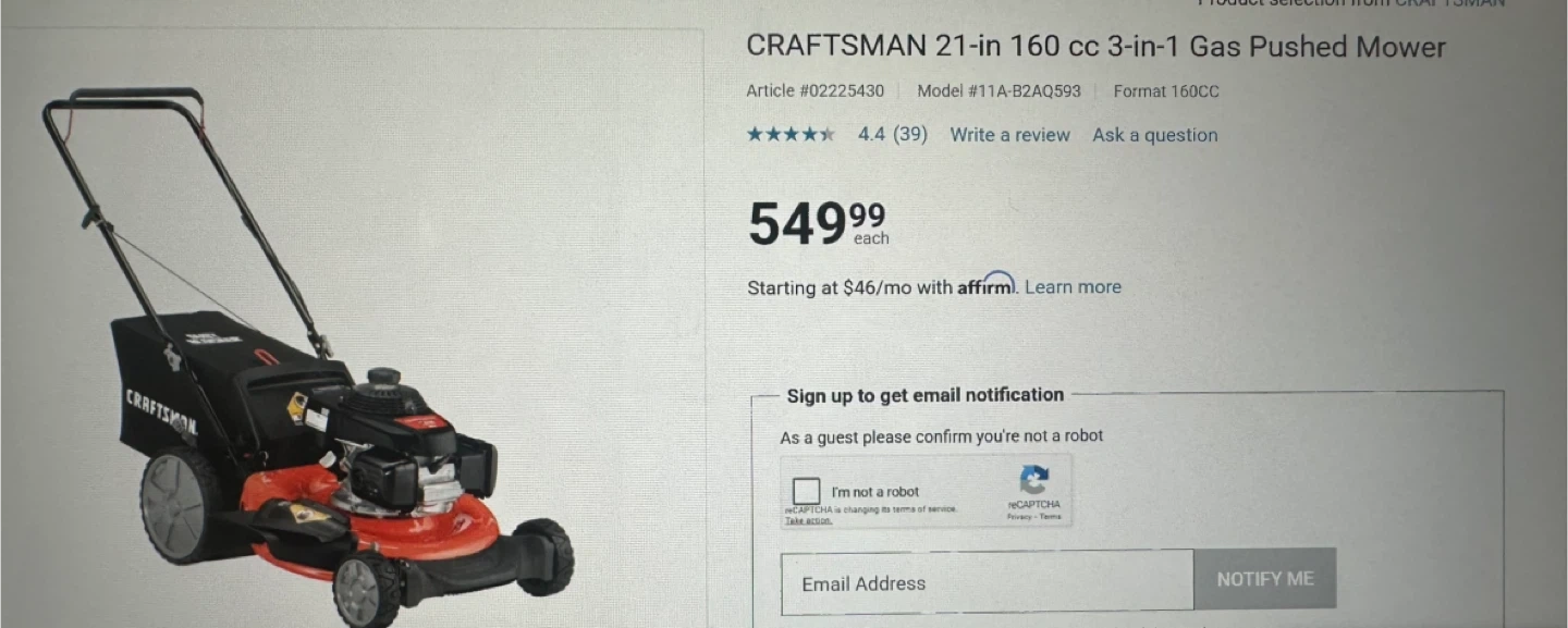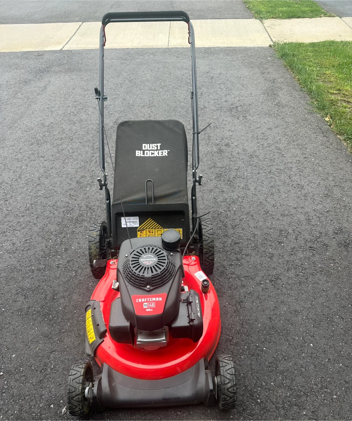 60Move out Sale Selling a Craftsman M140 gas-powered push mower. It's a 21-inch model with a 160cc engine. The mower features a dust blocker bag to help keep your yard clean while you mow. Originally bought for $549.99 plus tax.