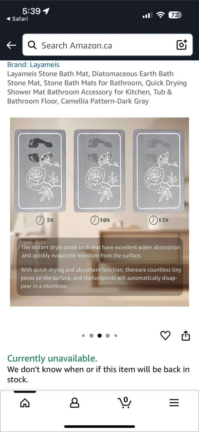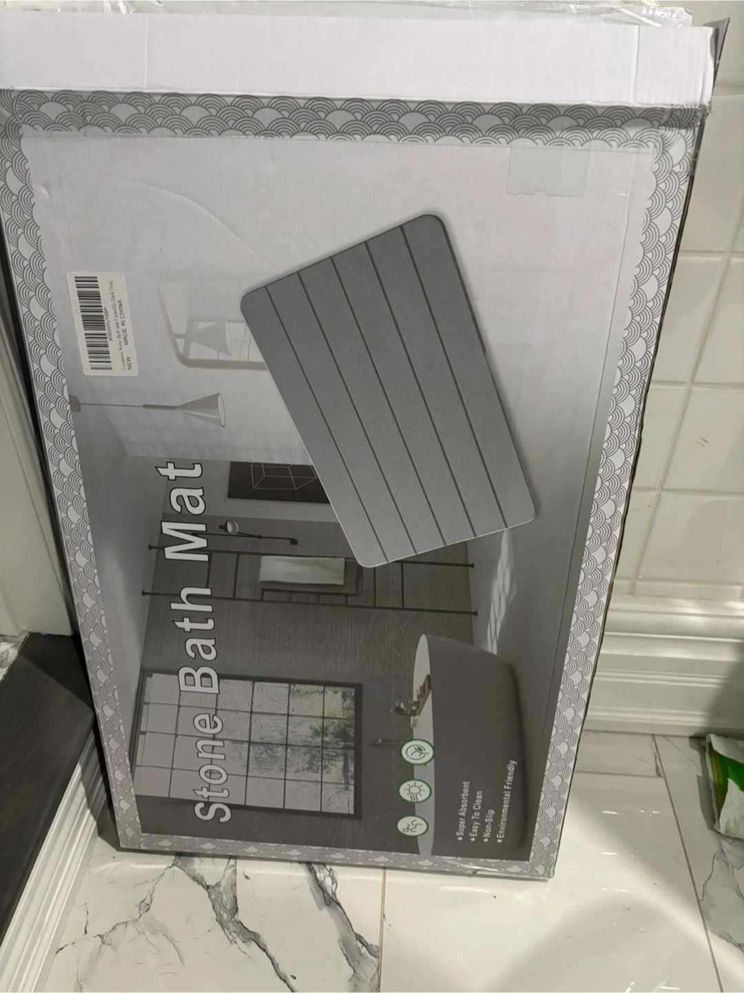 Selling a Layameis stone bath mat with a camellia pattern in dark gray. It's made from 100% diatomaceous earth, known for its super-absorbent surface, perfect for soaking up excess moisture. The mat also features a non-slip design to increase friction and avoid sliding, and it can buffer carpets to prevent deformation over time. It measures 23.6 inches by 15.3 inches. Comes with the original box!