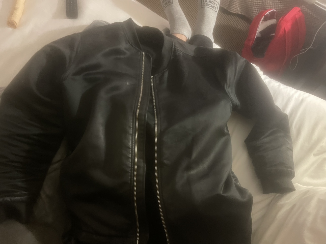 43Black spring coat, bought at Simon’s in Calgary.