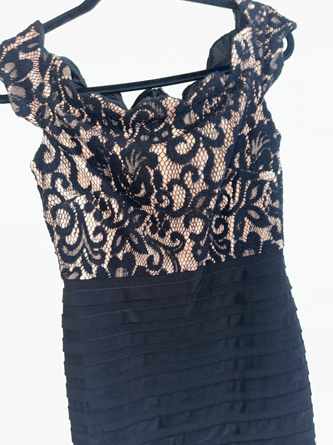 91Black dress. Features a pleated bodice. Skirt appears to be flowy. You could easily find this dress to be the perfect piece to wear to your next event.