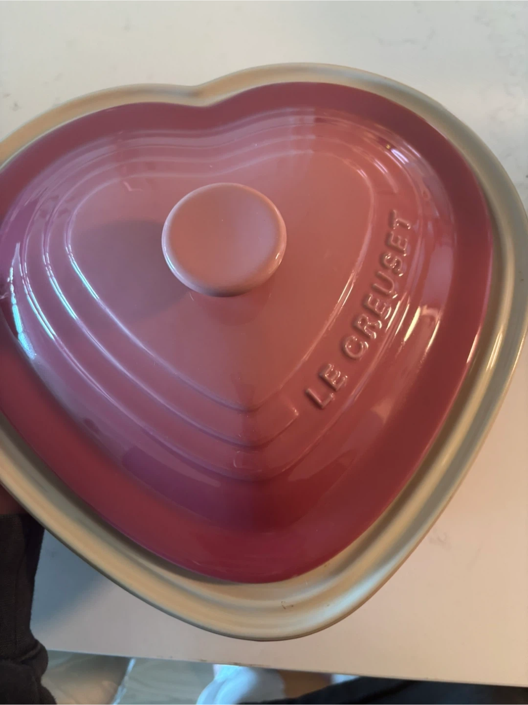 Selling a lovely Le Creuset heart-shaped cocotte! It's in great condition and perfect for baking or serving. The capacity is 2.4L . It's a beautiful pink colour that would look great in any kitchen, pick up only - North York - selling as shown in pictures