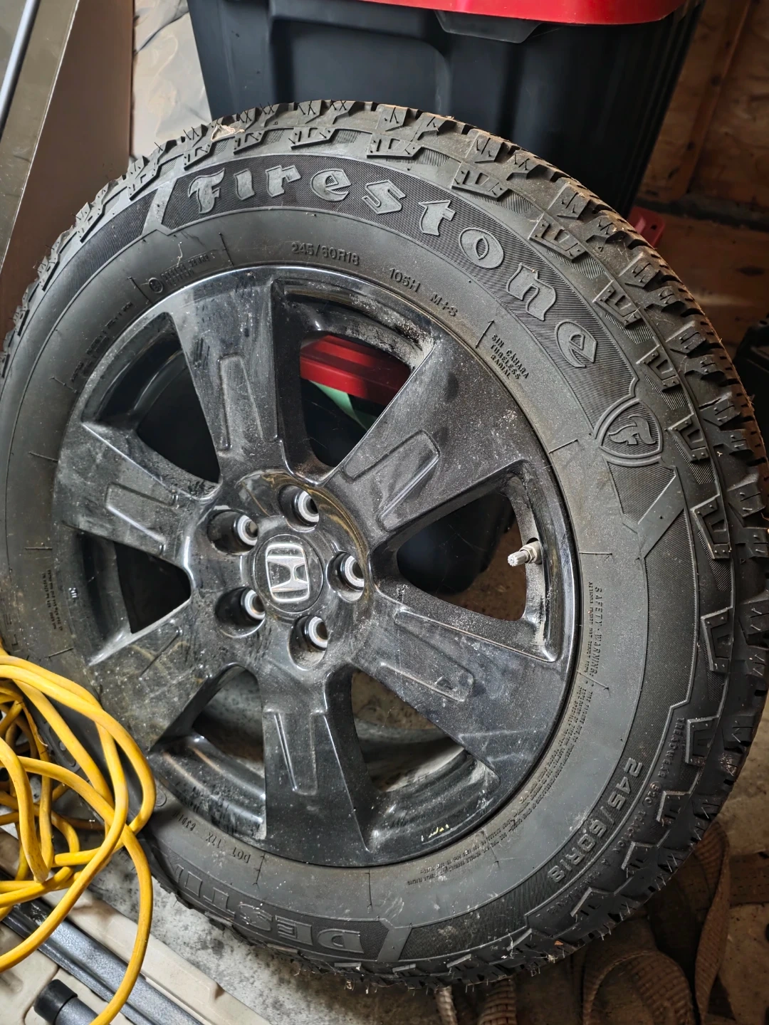 36Selling a Firestone Destination LE3 tires with Honda original rims. The size is 245/60R18. It has a treadwear rating of 560.