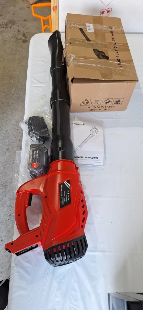 10• Cordless leaf blower powerful motor blows up to 320 CFM 180 MPH. • 6 different speed adjustments for airflow peaks up to 20000 RPM. • Powerful 6.0Ah battery and charger included. • Priced to sell.