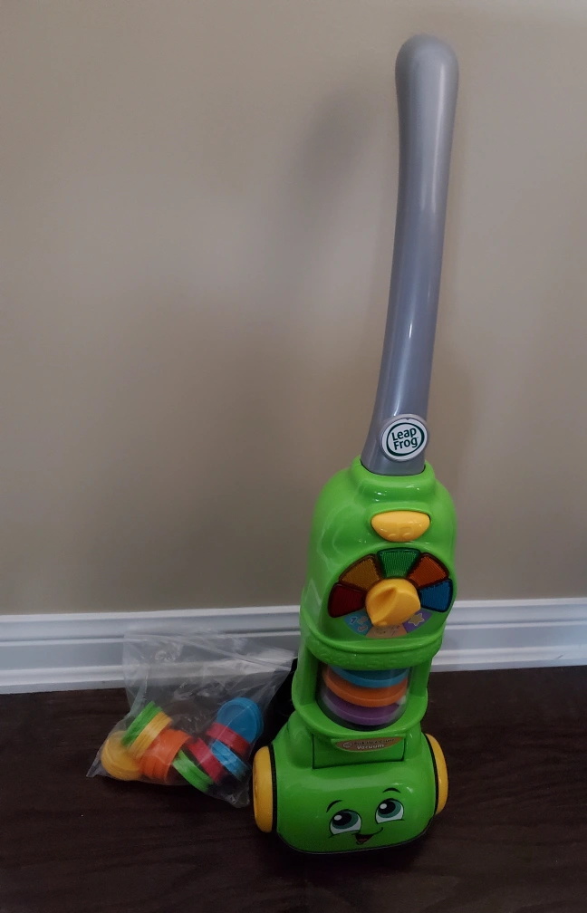 43LeapFrog Clean-Up & Learn Vacuum toy. It's used but in great shape and ready for a new home. Comes with the 10 dust pieces.