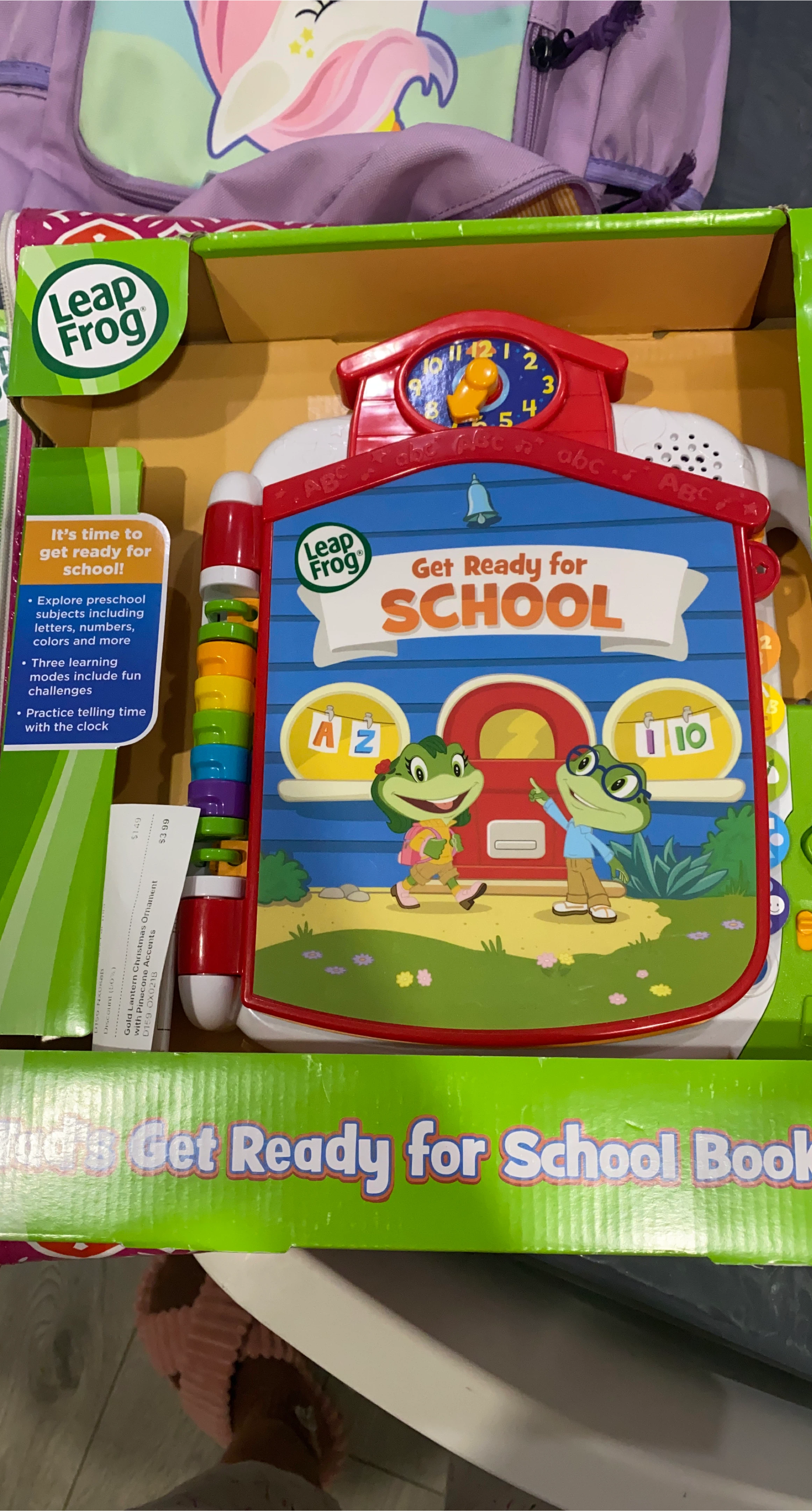 68Selling a brand new LeapFrog Get Ready for School Book! It's still in its original box, ready for a new home. This interactive book helps kids explore preschool subjects like letters, numbers, colours, and more. It also features three learning modes with fun challenges and practice telling time with the clock. Perfect for getting your little one ready for school!