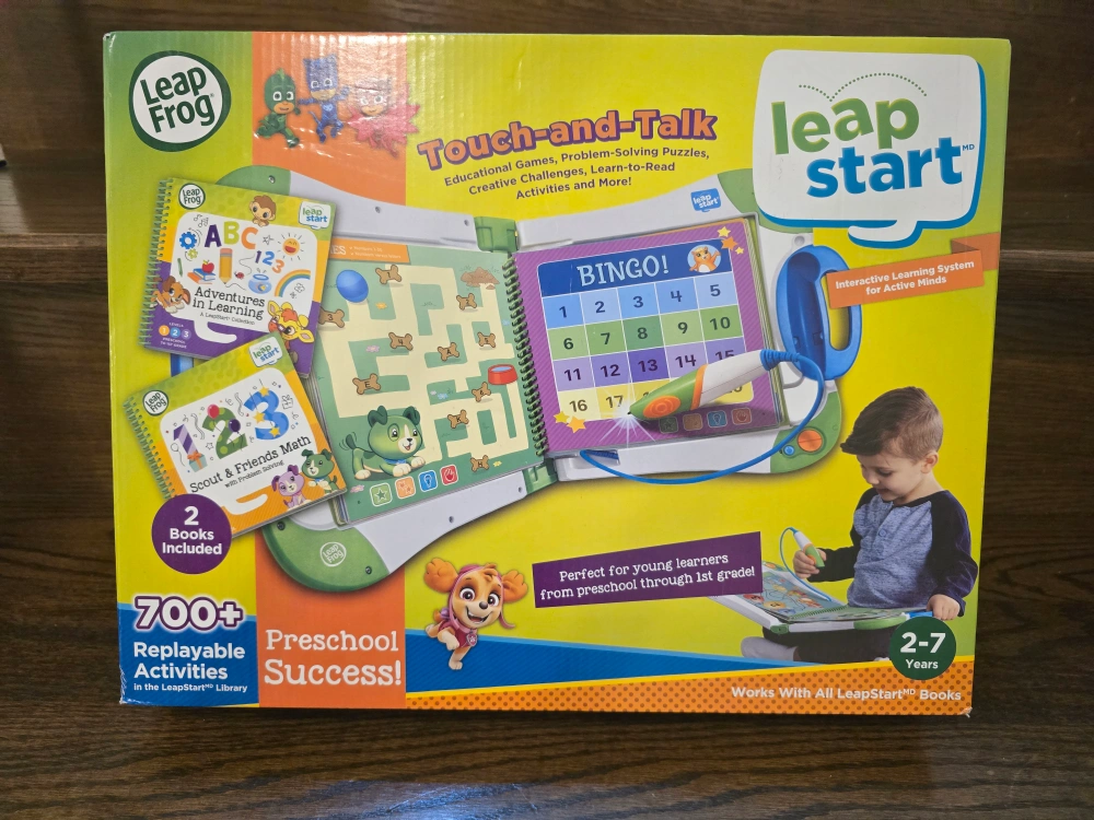 Get your little one ready for preschool with the LeapFrog LeapStart Touch-and-Talk! This interactive learning system is perfect for ages 2-7 and includes 2 books to get started. It works with all LeapStart books and offers over 700 replayable activities in the LeapStart library. It's a great way to introduce educational games, problem-solving puzzles, and creative challenges!
