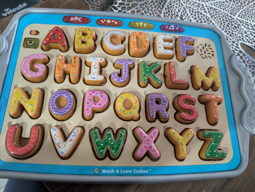 109This is a LeapFrog Match & Learn Cookies toy! It's a fun way for kids to learn their ABCs with cookie-shaped letters. Perfect for little ones who love to play and learn at the same time