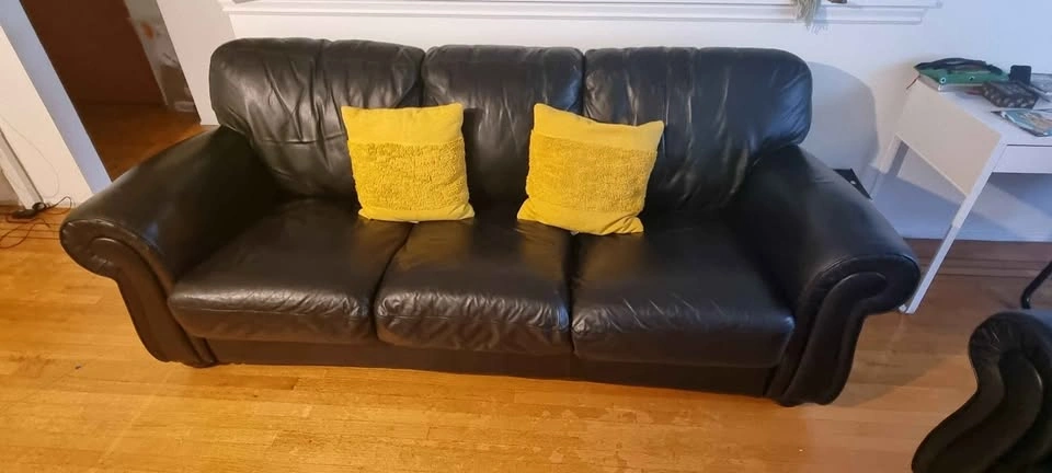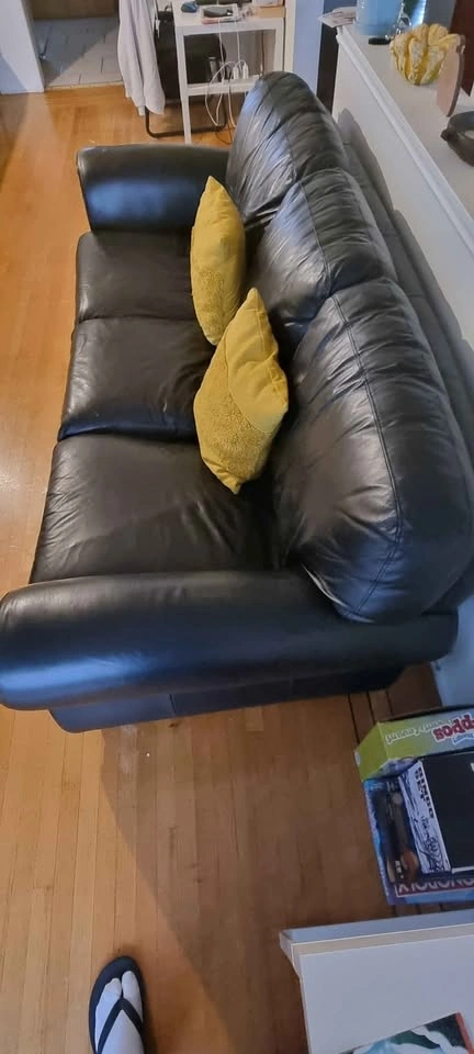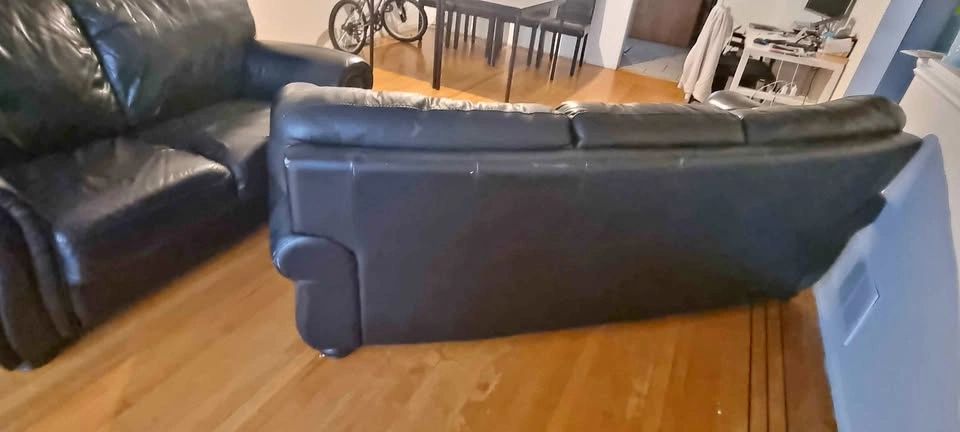 10Willing to sell them separately. 2-seater black leather couch $200 3-seater black leather couch $250 Pick up in Marpole E-transfer or Cash **Does not come with cushions** **If the add is up the item is available**