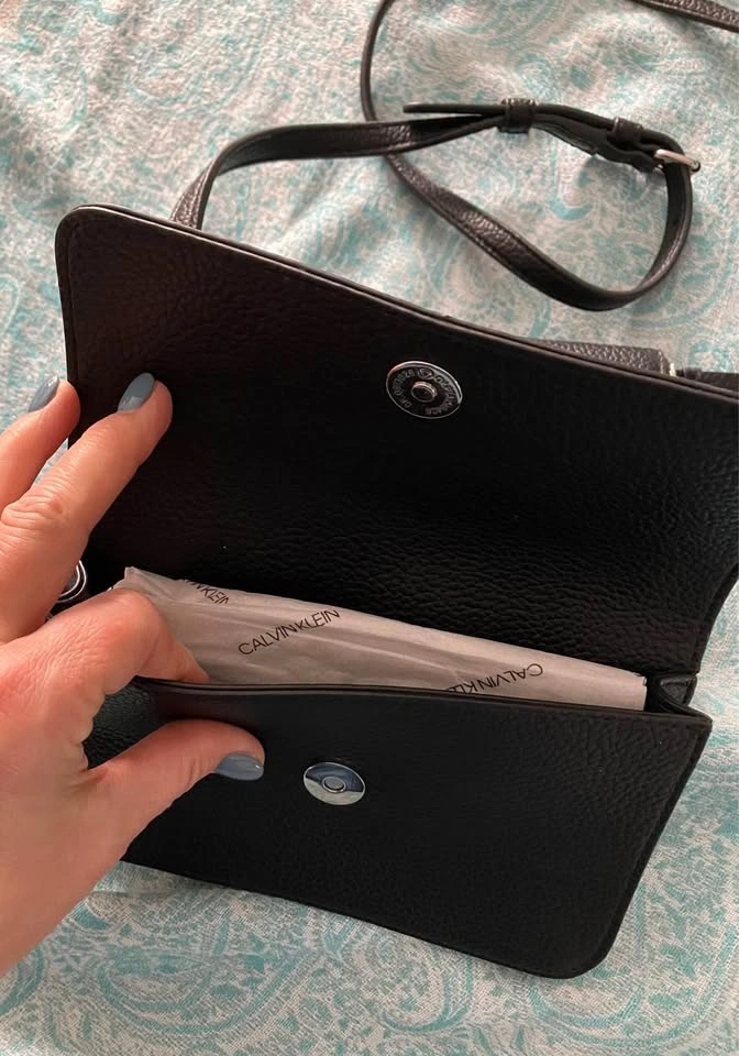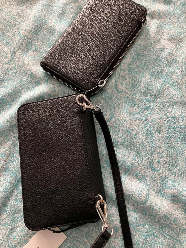 DESIGNER DEAL!! Brand new black leather Calvin Klein wallet and purse combo. Wear them clipped together as a double unit or separate them to use as individual pieces and use them with or without the adjustable strap attached. It’s like 5 purses in one! Each piece of the set is 7.5” x 4.5 Original price was $169.50 - price tag is still attached!! NOTE! When you buy this purse, you are helping to support women in need as the Funds received for this purse will all be donated to charity that supports women in our community! Because of this - the listed PRICE IS FIRM!! I have lowered the price but this will be the last change in price! Buy yourself a unique purse and do something good for another woman in the process!