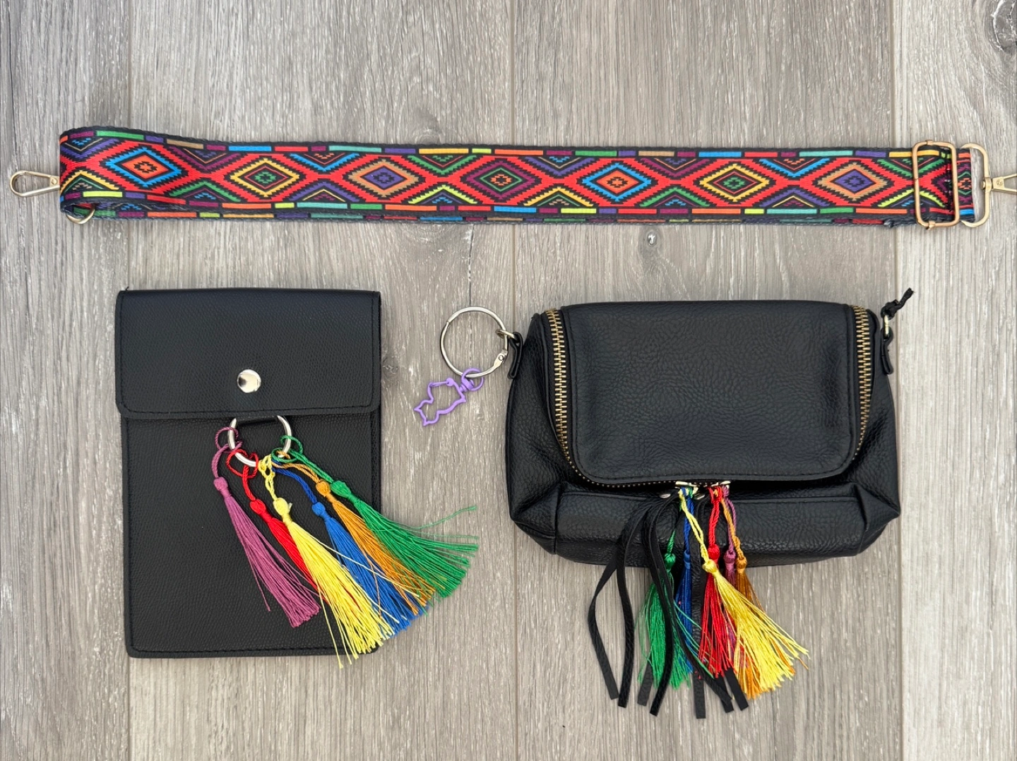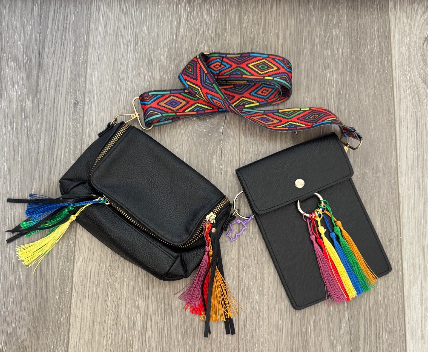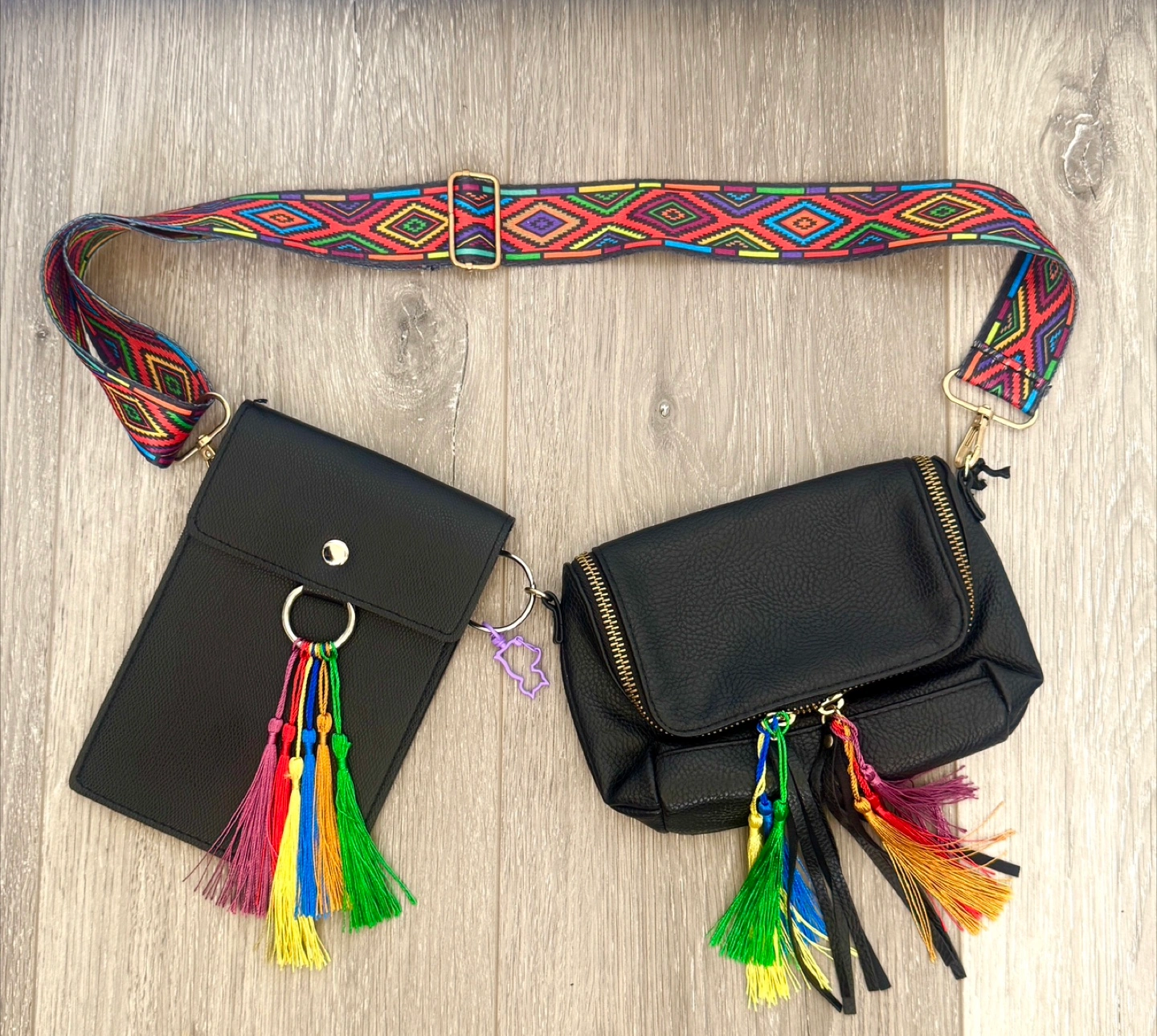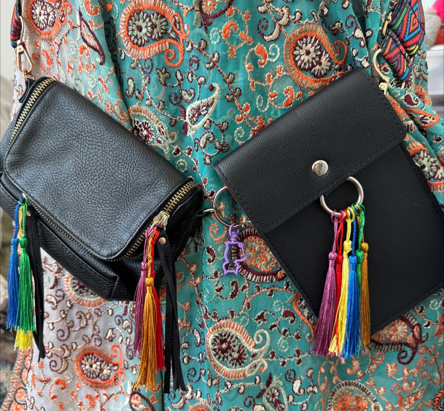 122One-of-a-Kind Festival Rave Belt Bag Set – Custom, Stylish & Functional! Unique custom-made rave belt bag set designed for functional use, long wear comfort and style. This exclusive, handcrafted piece features: ✨ Interchangeable design – Swap effortlessly between sleek 2 leather satchels and a vibrant multicolor printed adjustable strap ✨ Detachable bags and tassels – Use both or just one, fully adjustable to your fit colours and theme ✨ Spacious storage– Holds large phones up to an iPhone 15 Pro Max with plenty of room for other essentials ✨ Customizable details – Interchangeable tassels and a purple kitty carabiner to attach a fan or scarf or chains ✨ Premium craftsmanship – Made with high-quality leather and repurposed festival-ready materials ✨ Perfect festival companion – Moves gracefully with your dance swaying in sync with your energy This custom made, versatile, unique, one-of-a-kind set guarantees that no one else will have the same piece! Don’t miss out on this **statement-making accessory**—it’s designed to match every festival outfit and keep you looking effortlessly cool while you dance the night away! 🌈🔥 I also have this listed on my Poshmark Shop, if you want anything on my Poshmark with this item, let me know and I’ll include the following discounts: 🌟 SPECIAL FALL 2025 POSHMARK OFFERS: Store name: DAMEDEALS Discount code: DAMEDEALS (to get $15 off first purchase on Poshmark, which covers you shipping costs for your first order). Bundle & Save + Discounted/Free Purolator Shipping: - 2 items = 15% off - 3 items = 15% off + 9.99 shipping - 4 items = 20% off + 6.99 shipping - 5 items = 20% off + FREE shipping - 6+ items = 20% off + FREE shipping + additional free gifts