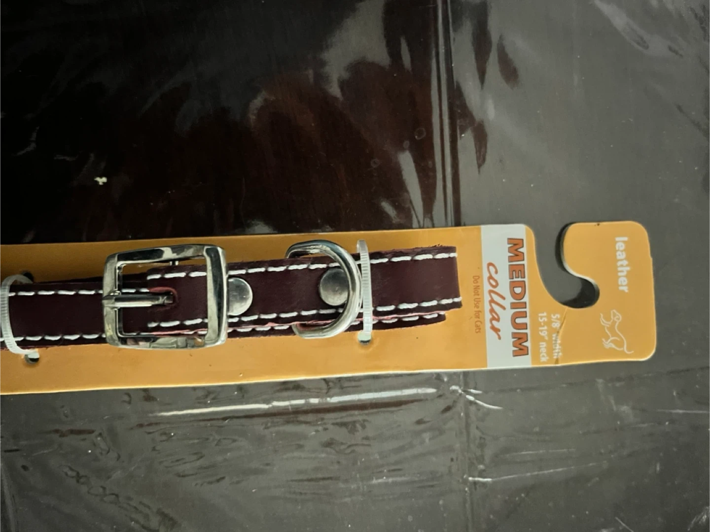 68Selling a brand new leather dog collar, still in its original packaging! It's a medium size, suitable for dogs with a 15-19" neck. The collar is 5/8" wide and is made of leather. Please note it is not for cats