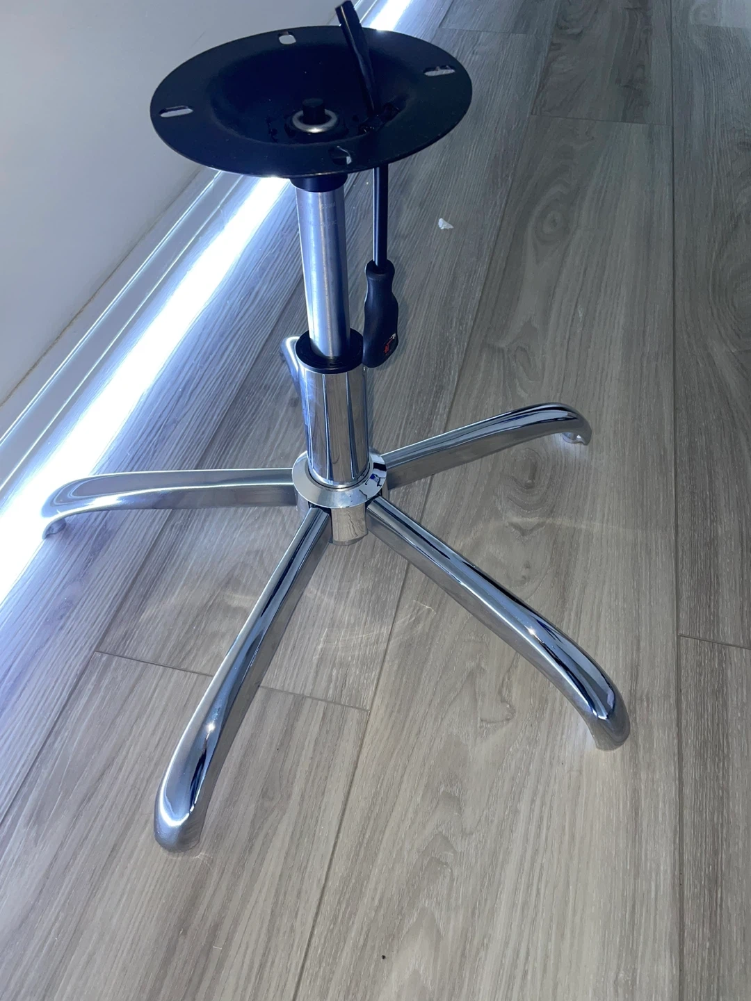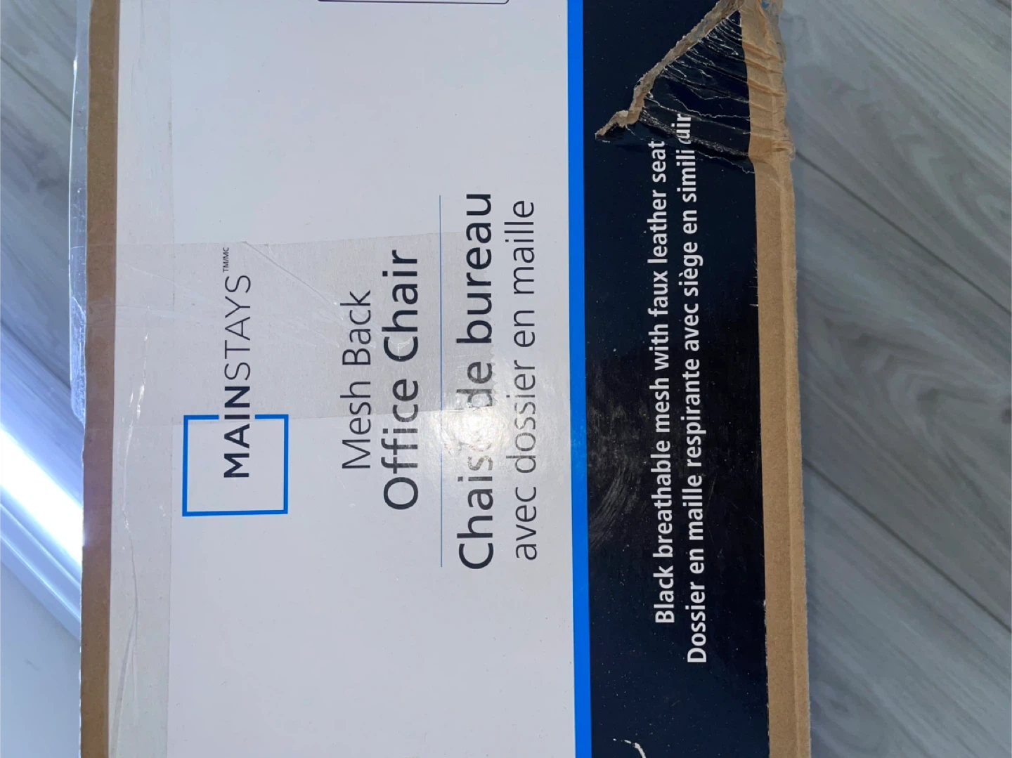 12Selling a Mainstays mesh back office chair in black. It features a black breathable mesh with a faux leather seat. The chair has an adjustable height and curved back. It has a durable chrome-coated metal base.