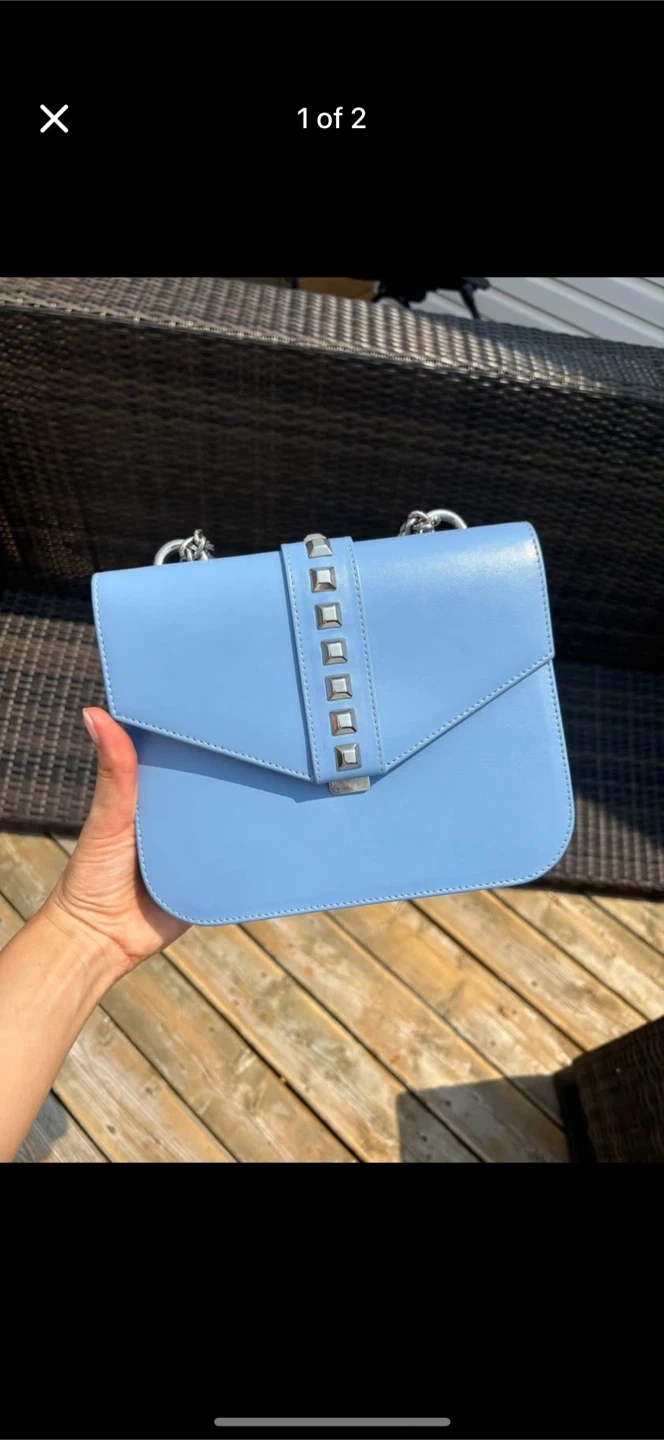 Selling a lovely 100% leather shoulder bag in a beautiful light blue colour! It's in great condition and features a stylish design with silver hardware. Perfect for adding a pop of colour to any outfit!