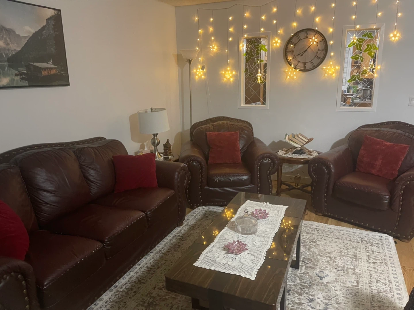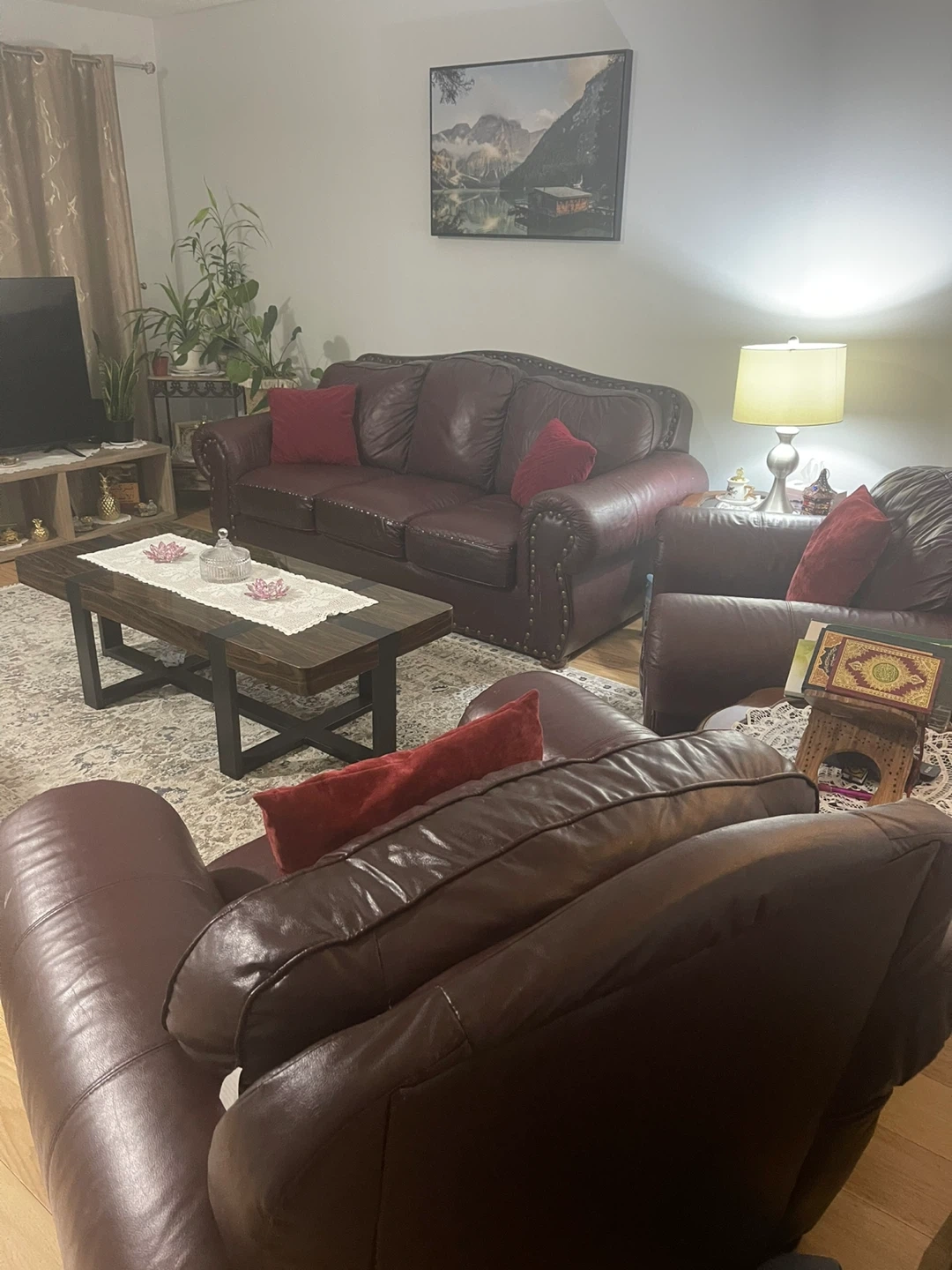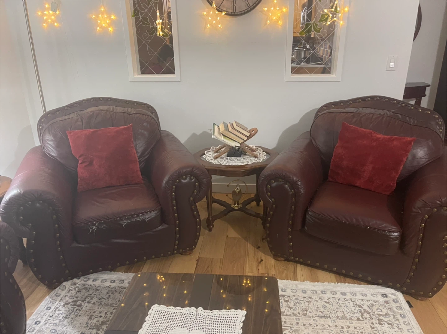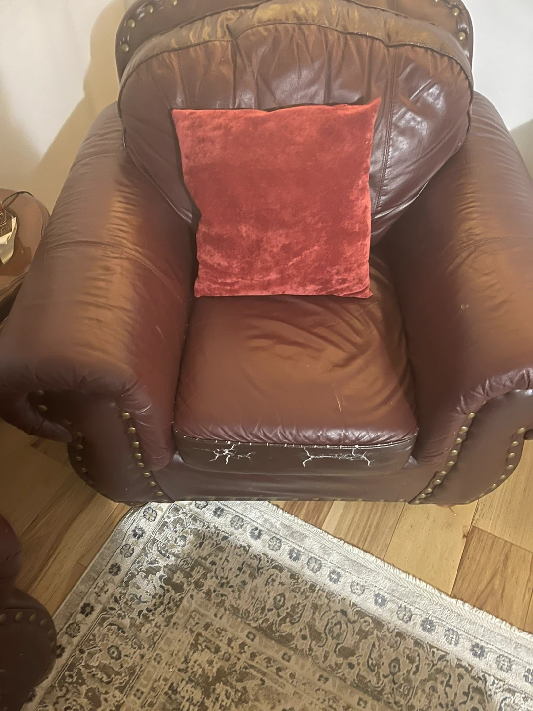 10Selling a brown leather sofa and two armchairs. The set has a classic design with brass stud detailing. They are in good used condition, perfect for a cozy living space! -3 piece sofa seat - Pet free - Smoke free - Real leather - Price negotiable - Pick Pineridge Ne