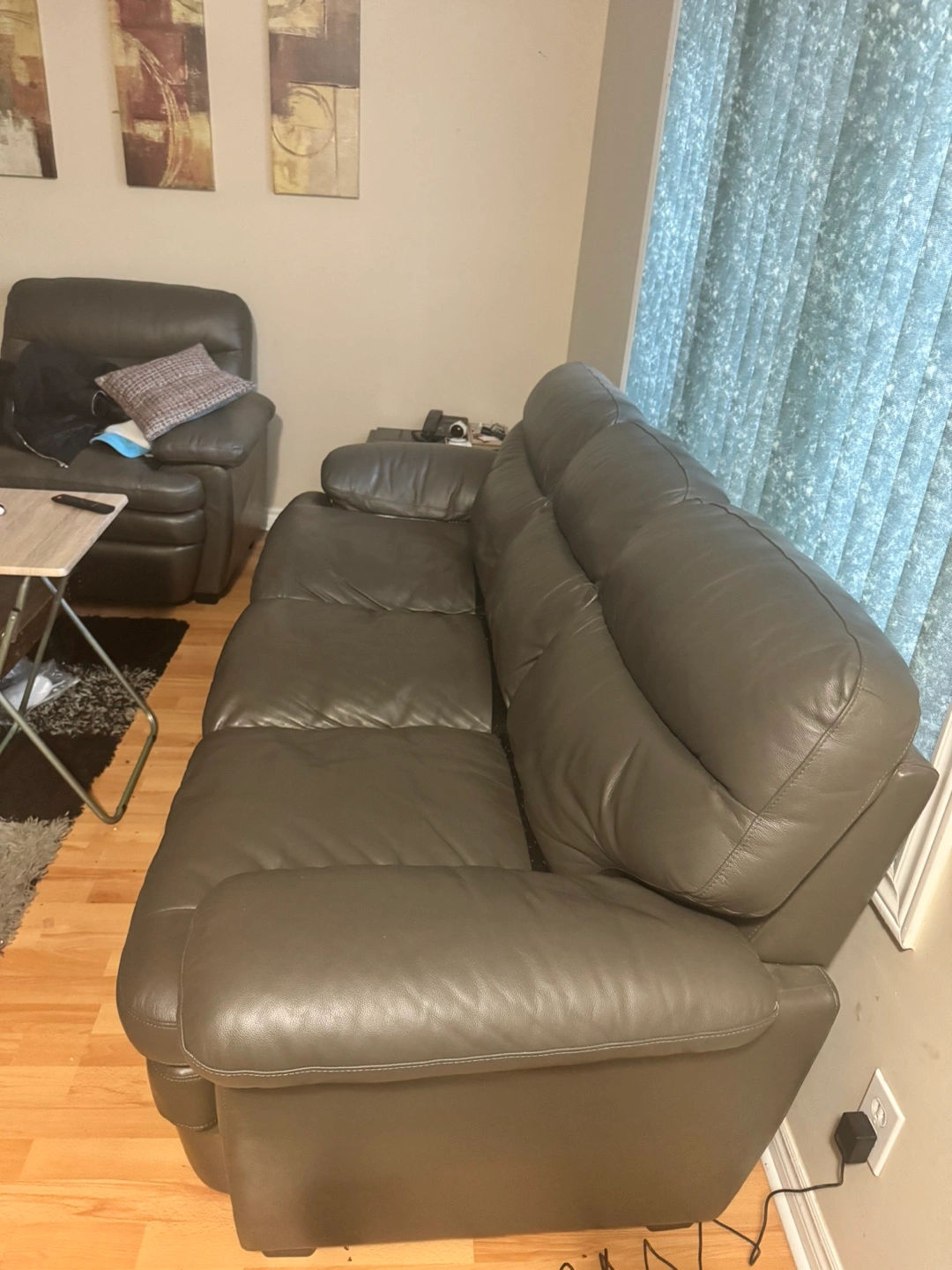 10Selling a comfortable leather sofa. It's a great addition to any living room and provides ample seating space. The brown color is neutral and fits well with various decor styles. It’s in good condition and ready for a new home!