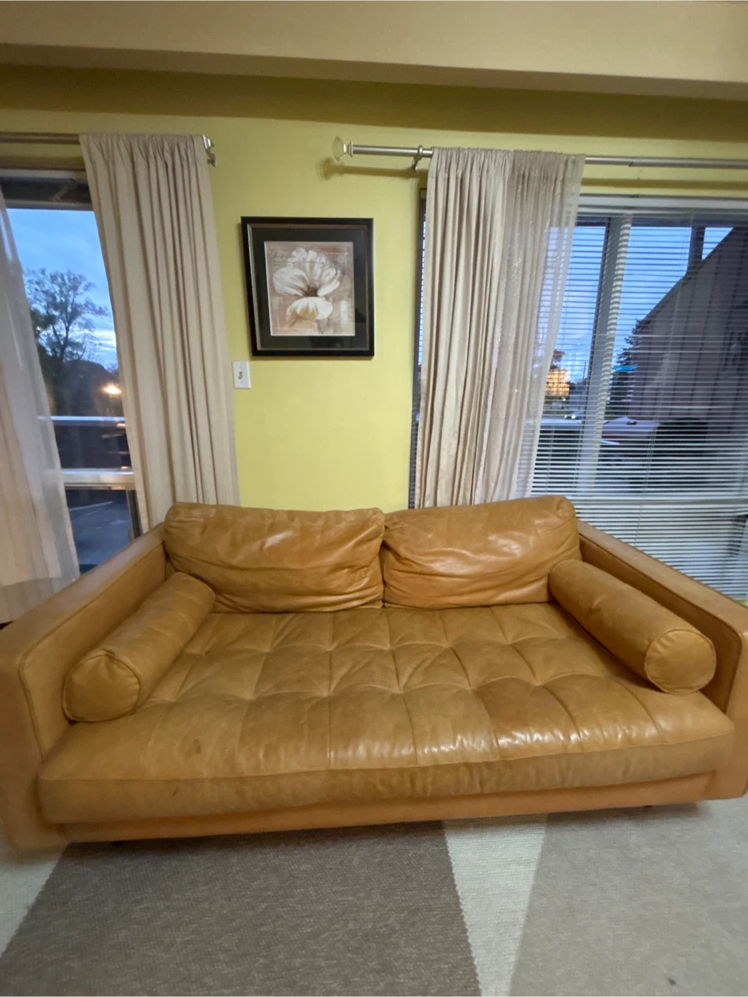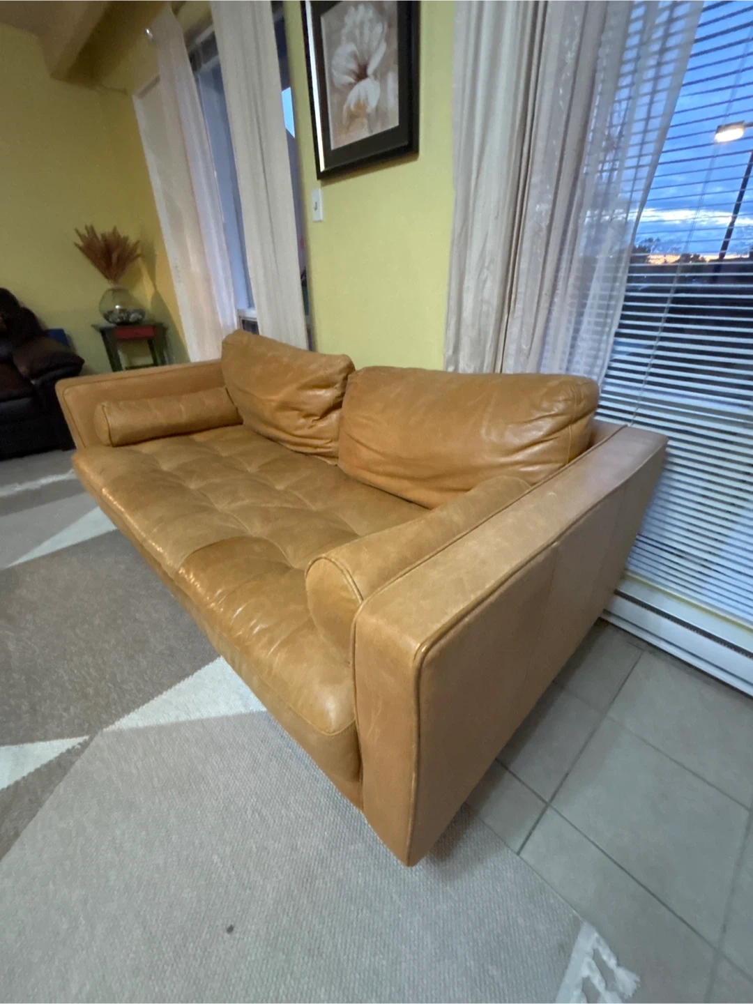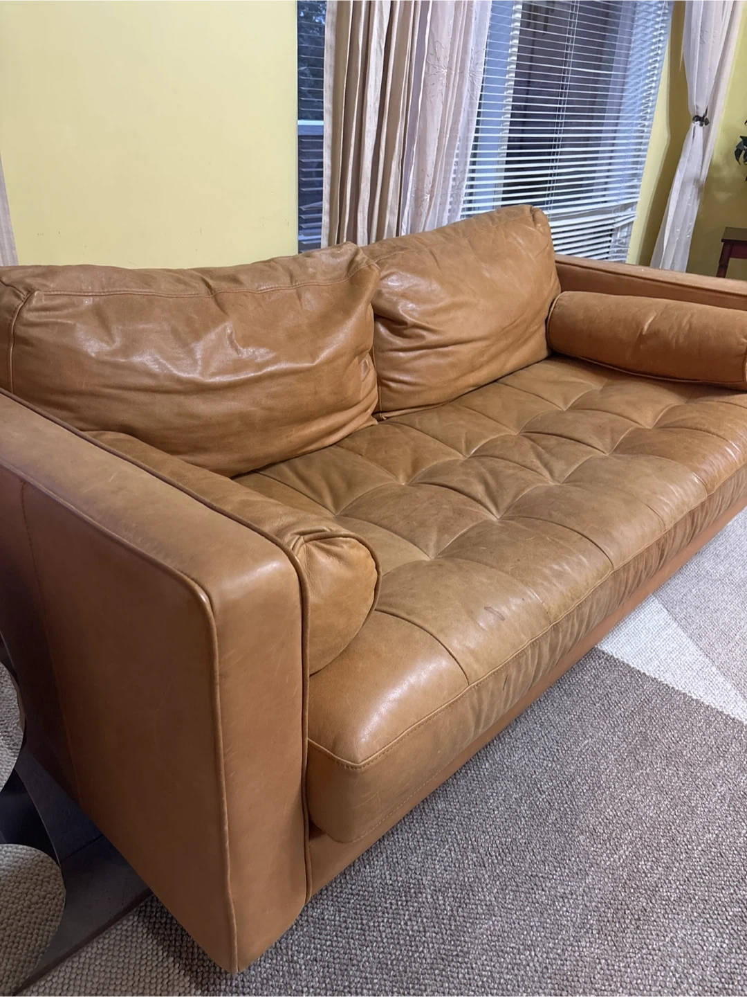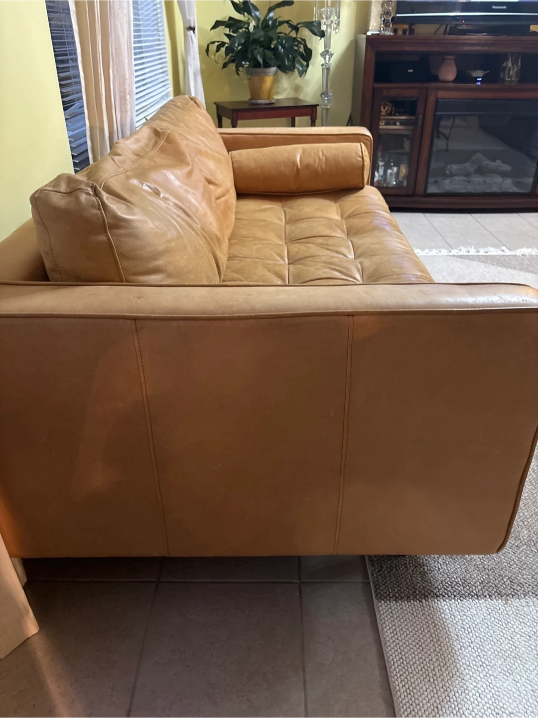 36Selling a comfy leather sofa. It's in great shape and would look great in any living room or den. It has a nice, broken-in feel! Perfect for relaxing after a long day.