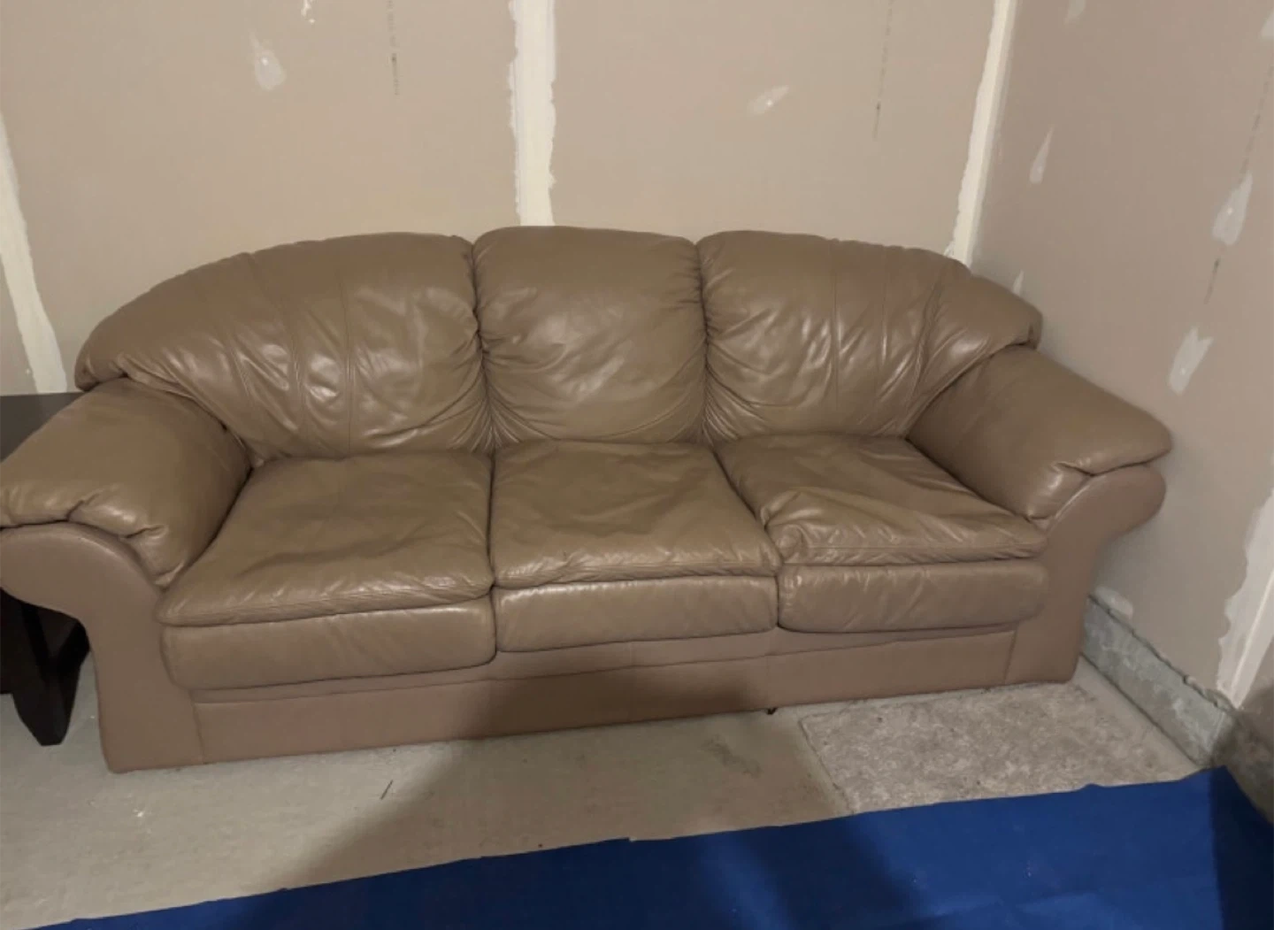 15Selling a comfy beige leather sofa. It's in good condition and ready for a new home!