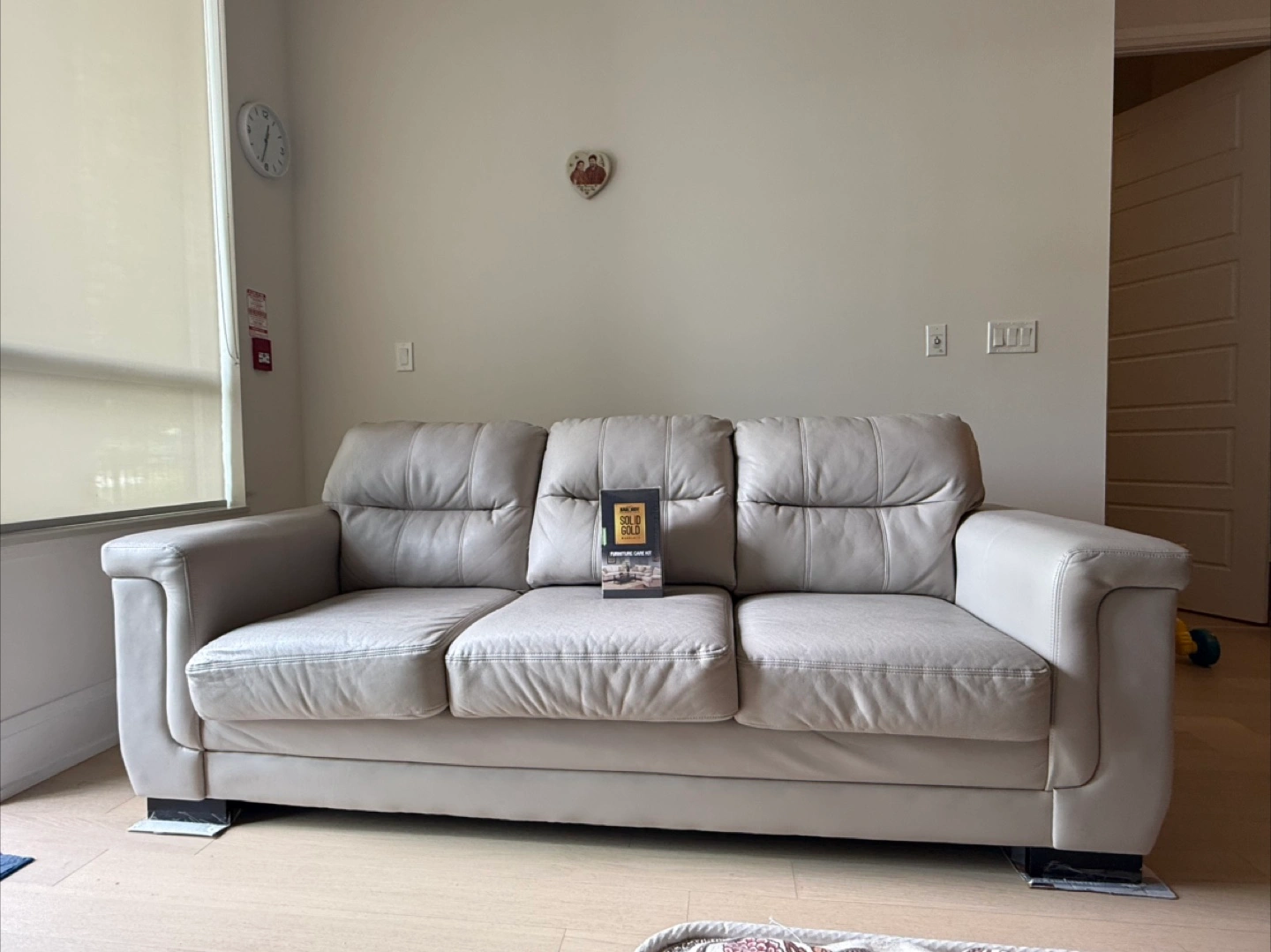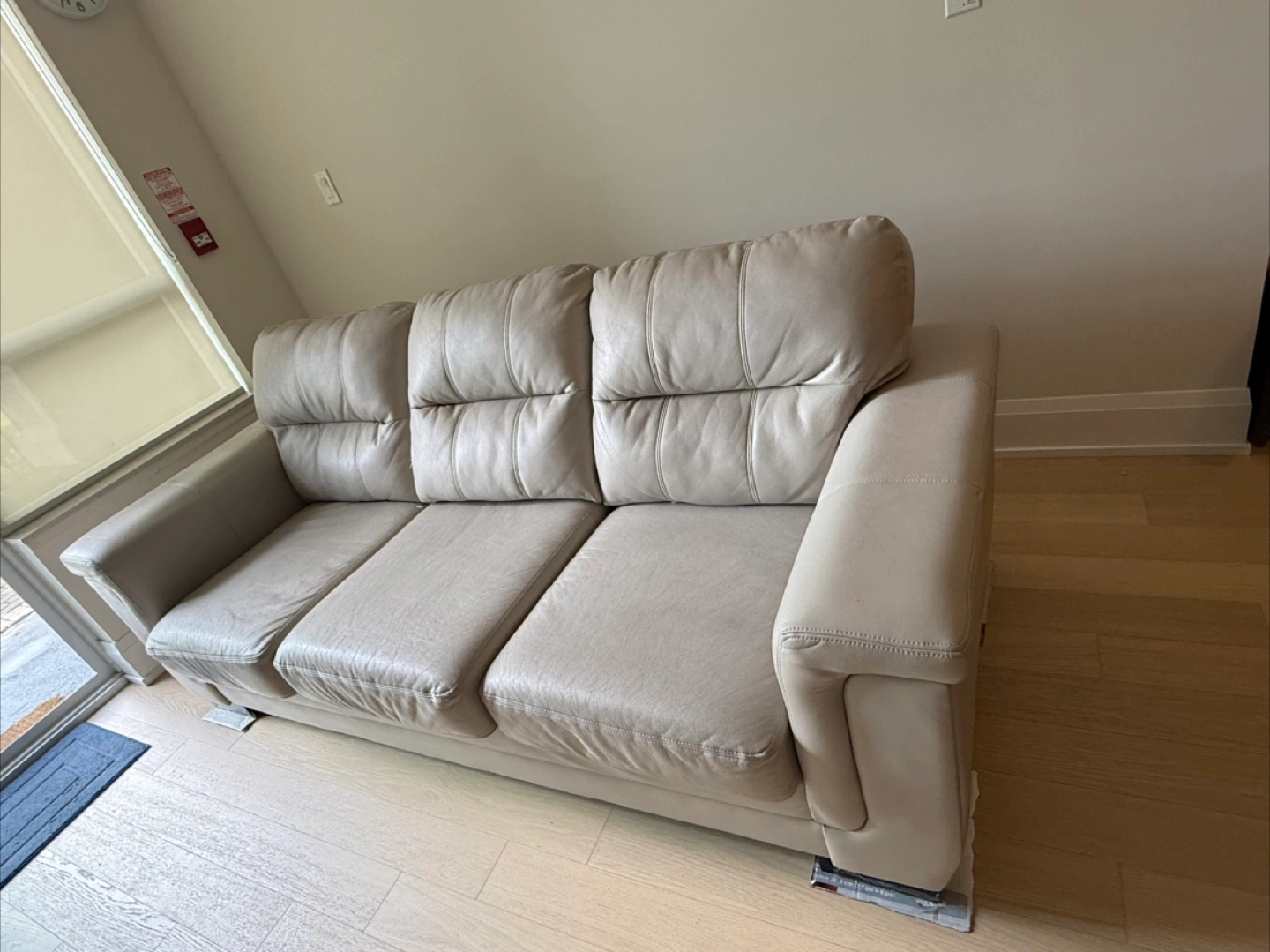 20Selling a comfortable and stylish leather sofa! It's a light beige colour and would fit nicely in any living room. It's in great condition and ready for a new home From SFPH pickup only Near warden and Highway 7