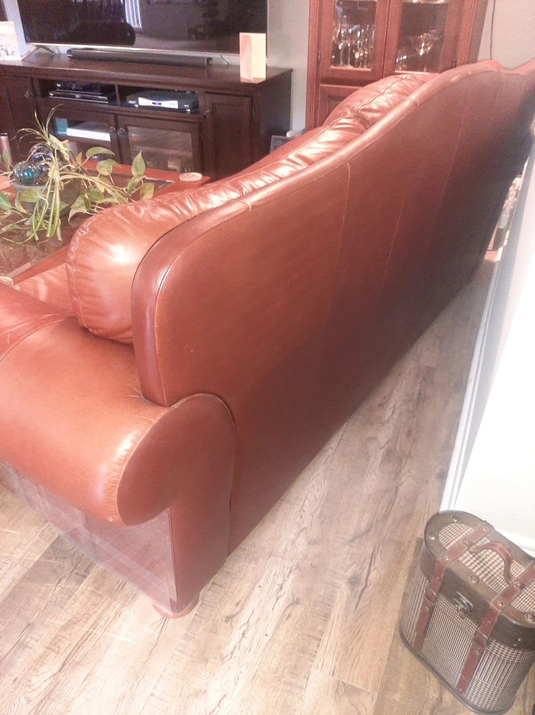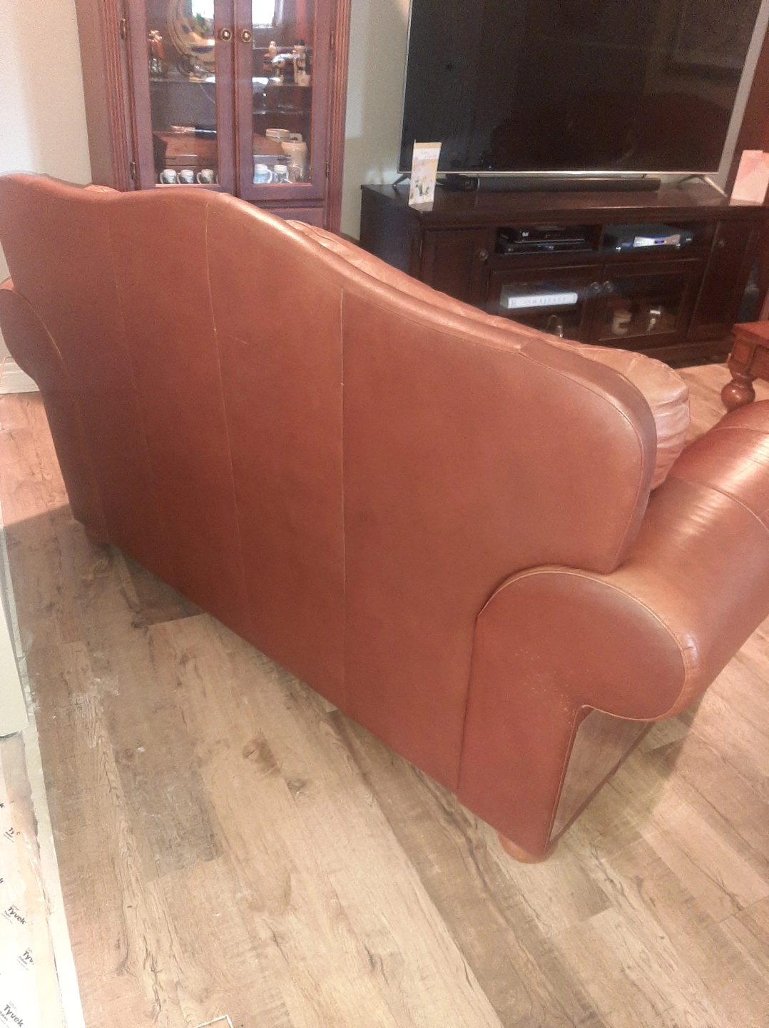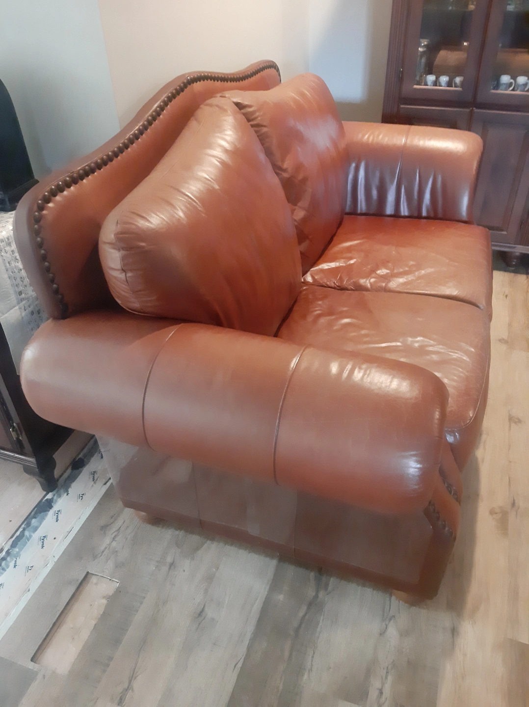 5Selling a well-loved leather sofa set, including a 3-seater sofa and a loveseat. The set is in good condition and would be a great addition to any living room! The leather has a lovely patina and the nailhead trim adds a touch of classic style