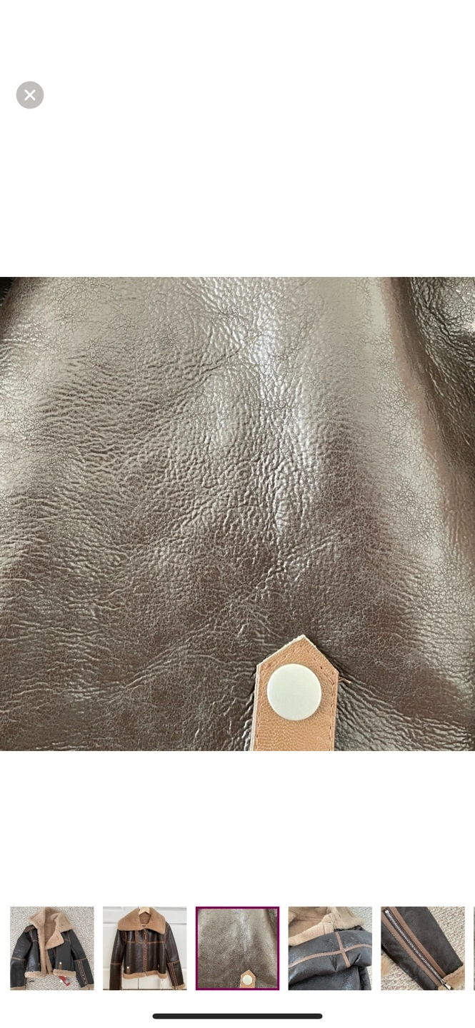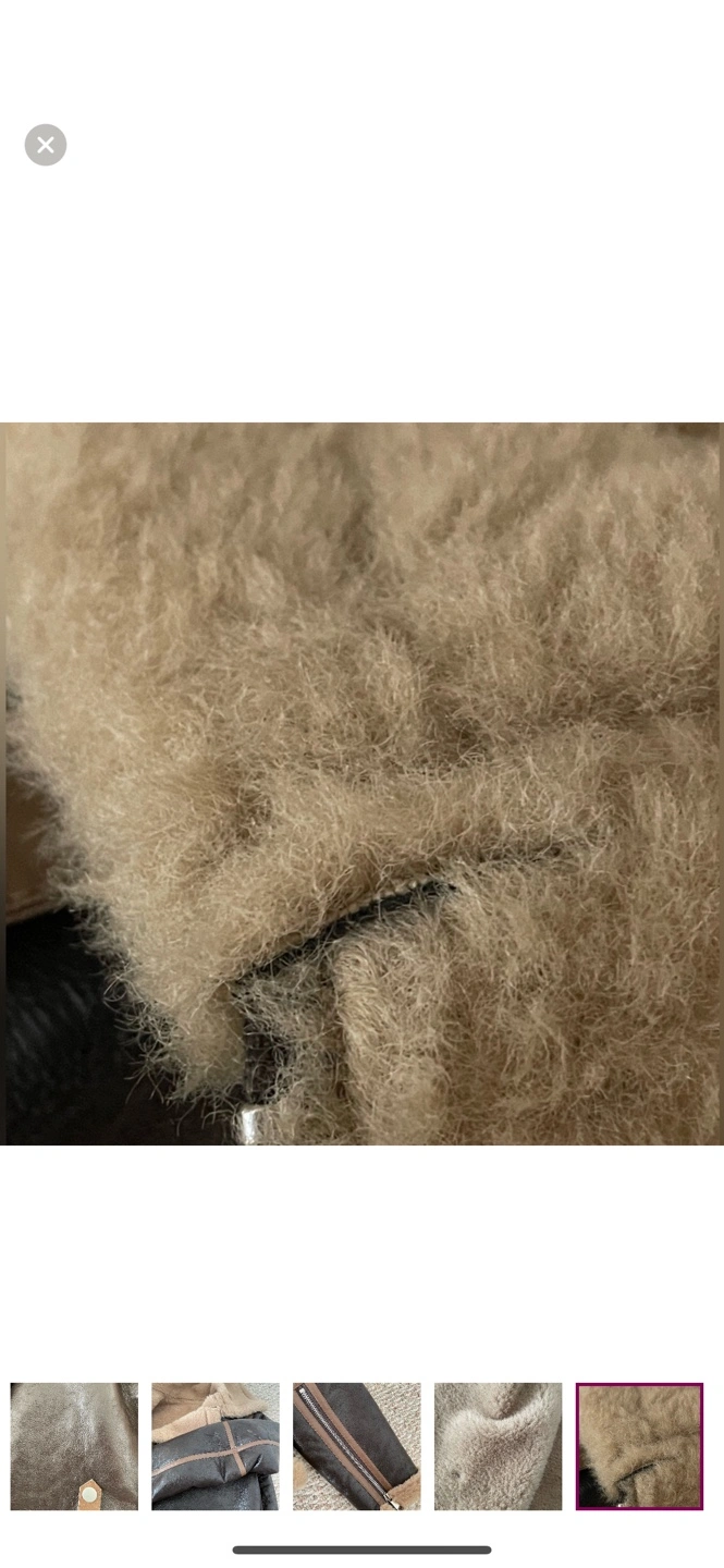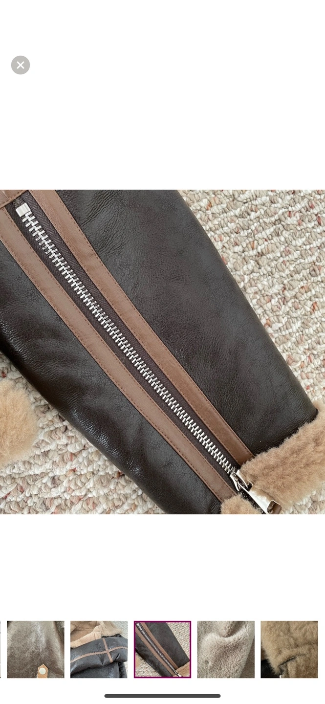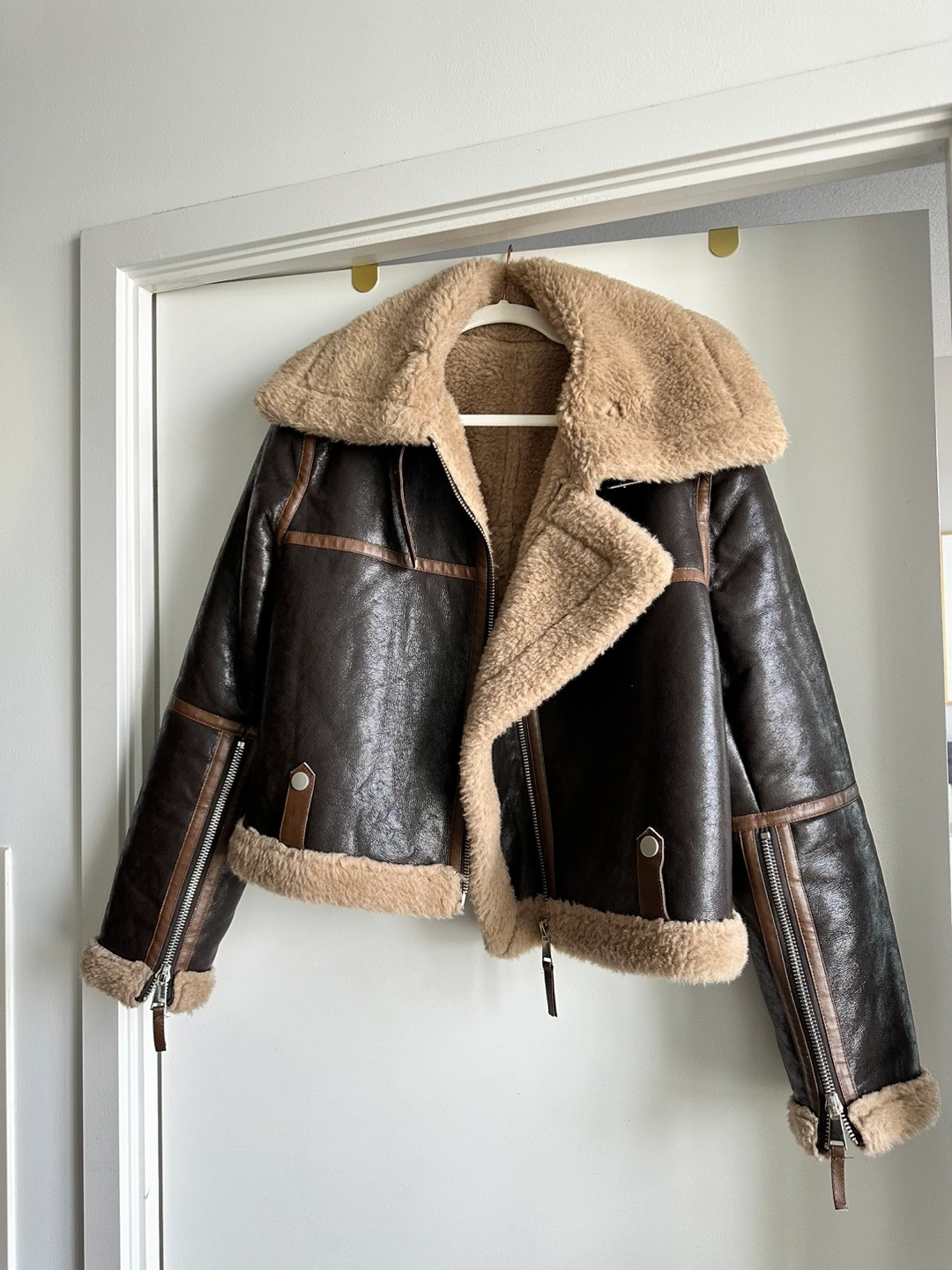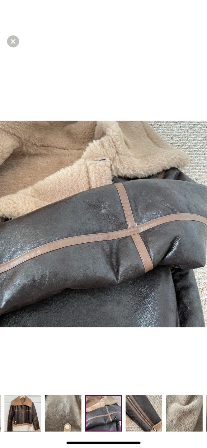584The classic-fit biker/shearling style jacket is crafted in lamb leather and wool. Finished with a dropped shoulder - oversized looked but no pocket. Can be worn as over-size, and keep you warm in the winter. 100% Leather and wool lining; Trim is Faux Leather; please see photos for details. Long-sleeve; zipper closure. Asian size: 2XL Bust: 55cm Waist: 56cm Shoulder: 44cm Sleeve: 64cm Length: 52cm