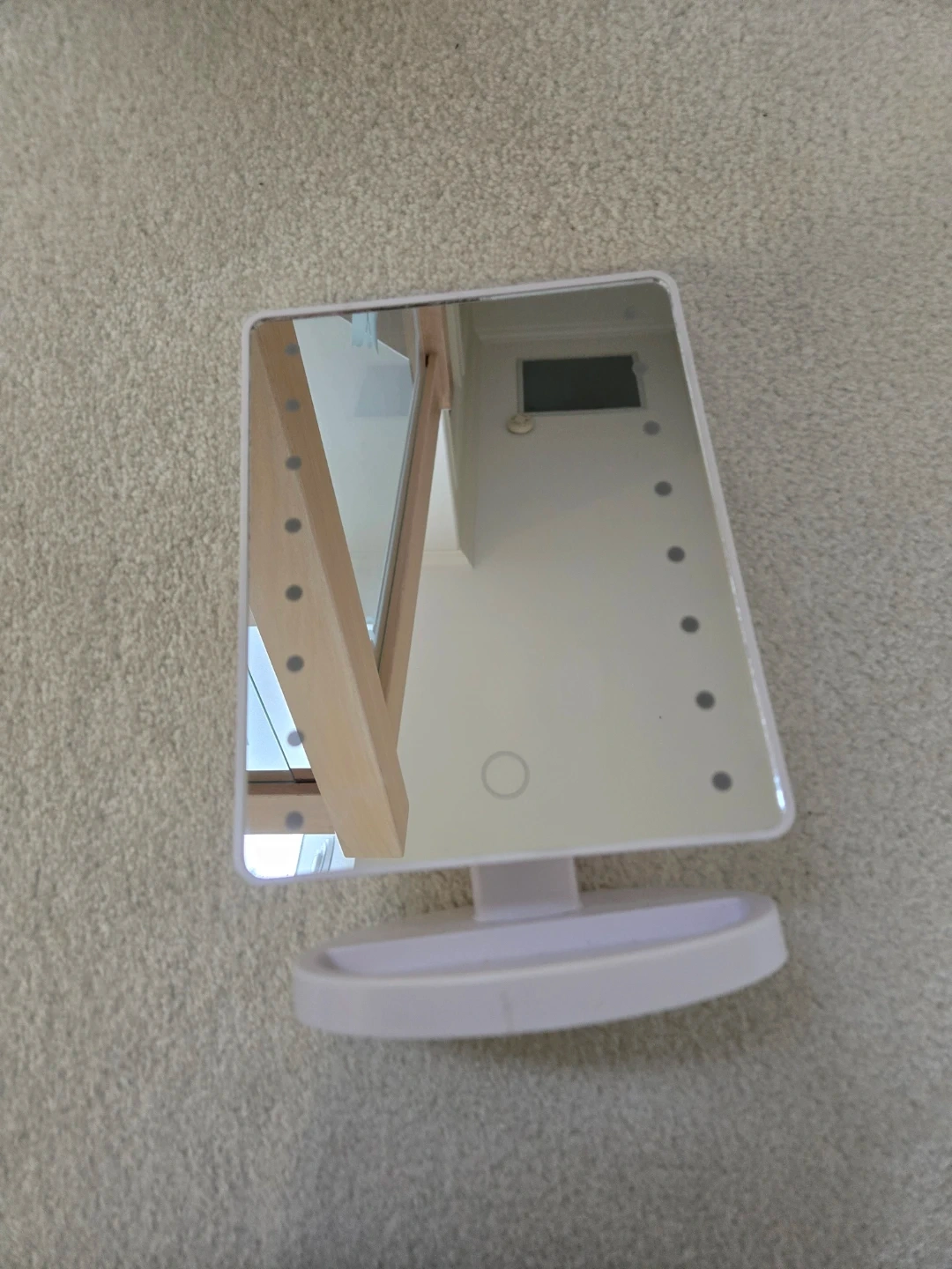 85Selling a lighted vanity makeup mirror. It has LED lights around the edge and a touch sensor to turn it on and off. It's battery/cable operated so it's easy to move around. Great for makeup application or just checking your look! Comes with cable and plug. pickup at 63rd West & Yukon St Or Marine Drive Station.