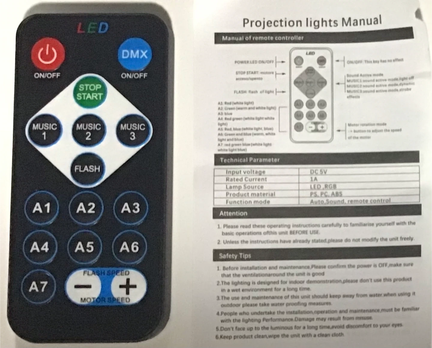 Get ready to light up your space with this cool LED projection light! It comes with a remote control for easy operation, so you can switch between different modes and settings. The manual is included too, so you can familiarize yourself with all the functions. Perfect for adding some fun and ambiance to any room! It’s charging right now, it comes with charging cord, not the charger. Works in iPad charger. Remote & instructions. Lots of functions on remote. As is. $10.00 exact cash only More info in last photo