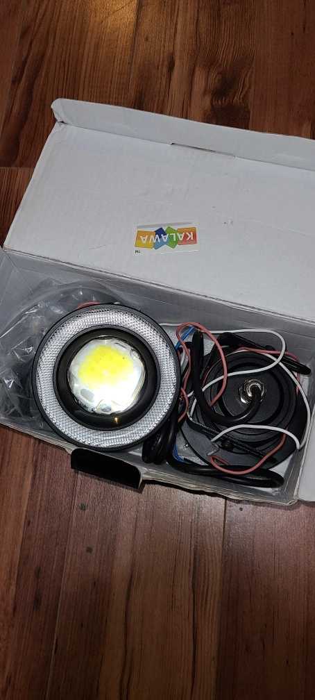 Selling an LED Super Lamp with Fog Angel Eyes. This is a new generation of energy-saving and environmentally friendly lighting. It has low power consumption and is anti-shock. The lamp offers a long lifespan, small luminance decline, good antistatic ability, and color consistency. The advantage lies in large viewing angle, light uniformity, high brightness, and good heat dissipation. Includes Kalawa box