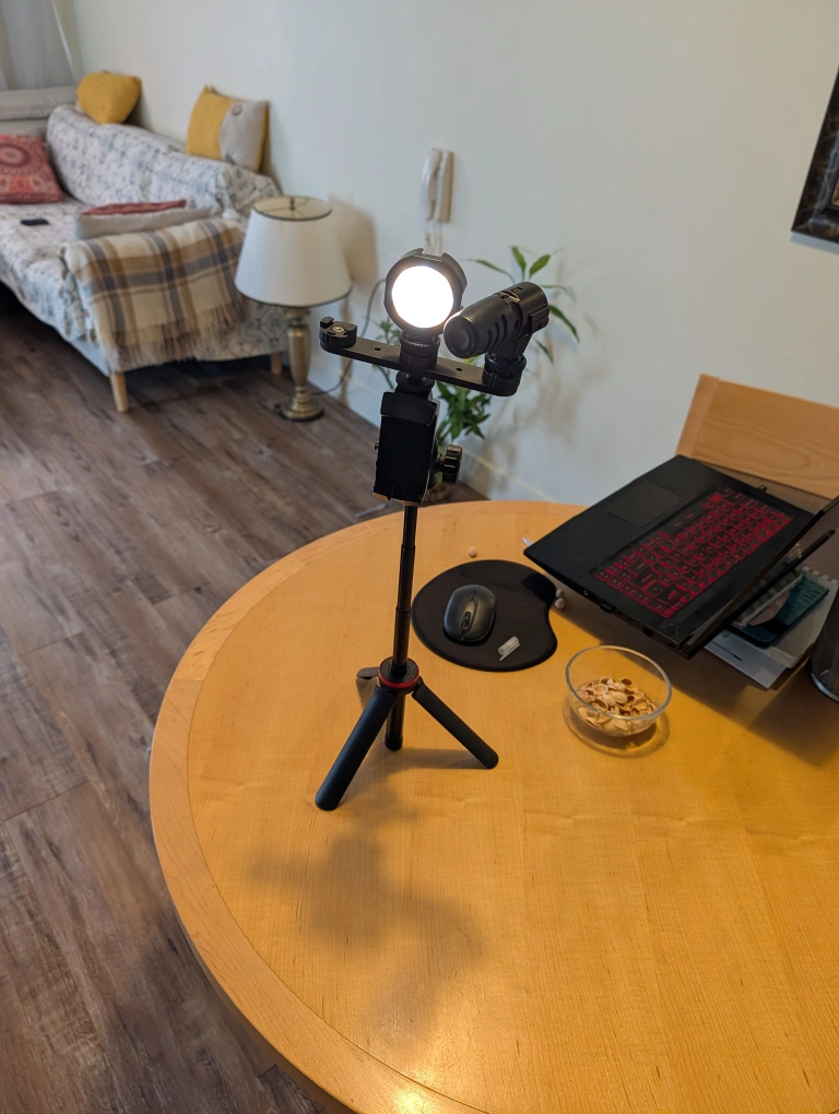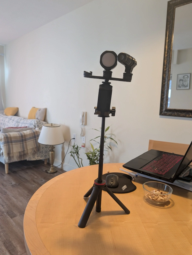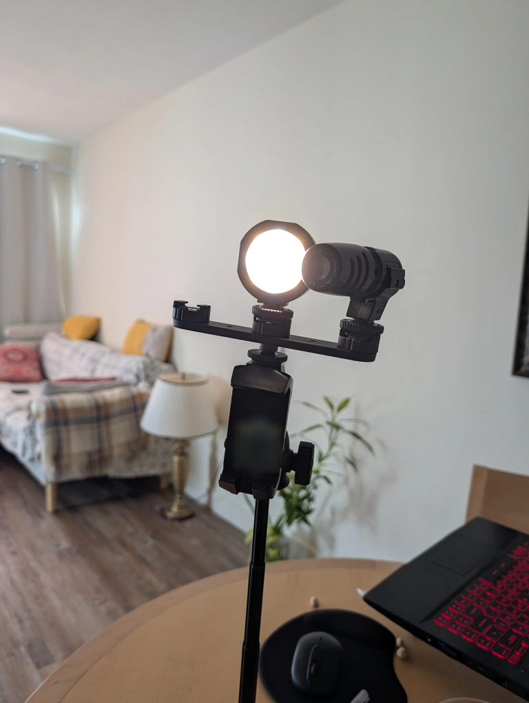 60Selling a portable LED video light that comes with a handy tripod stand and microphone. Great for video calls, content creation, or adding some extra light to your space. It's in excellent condition and ready to use!