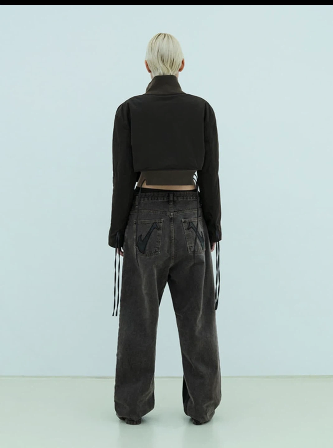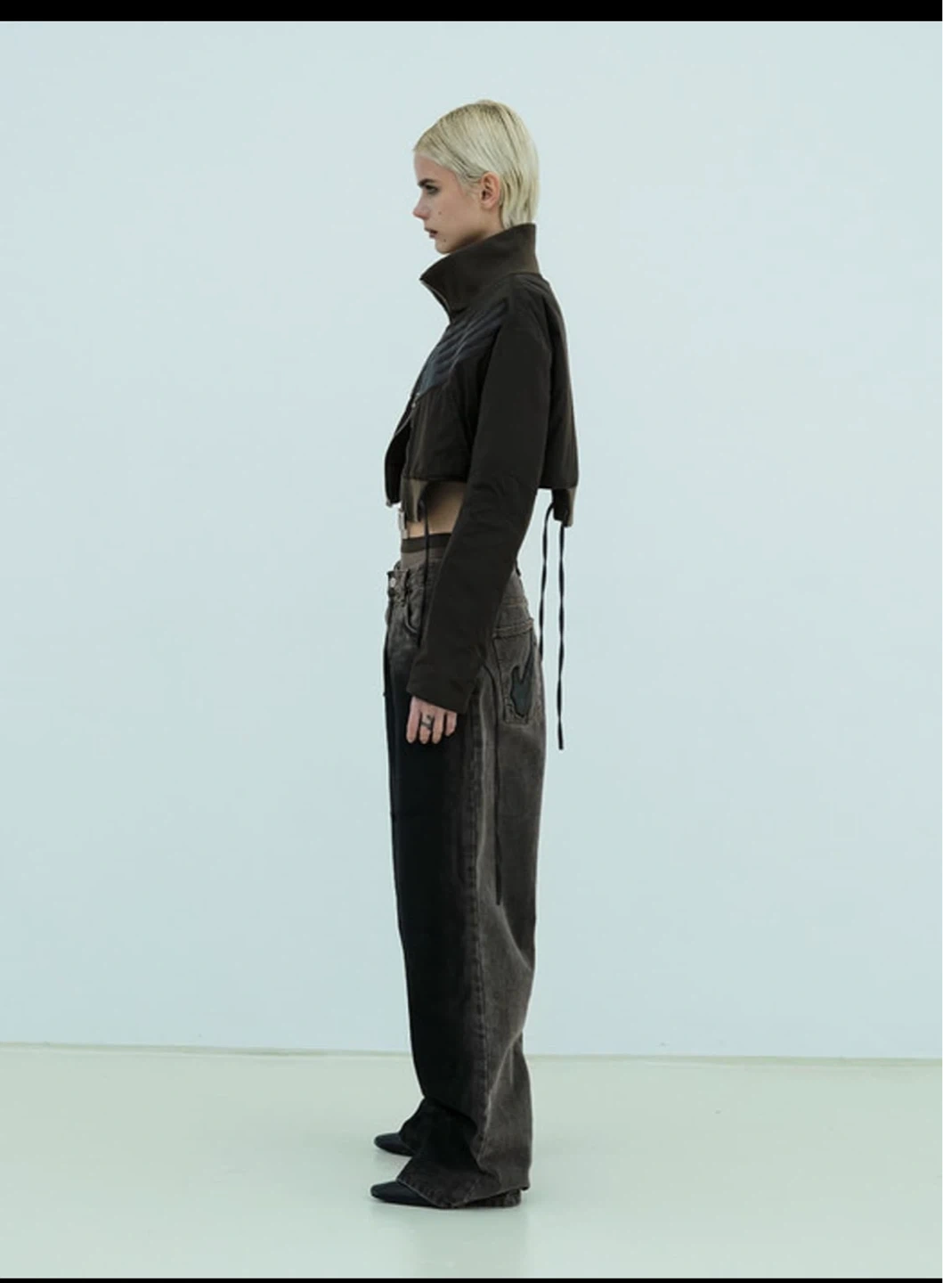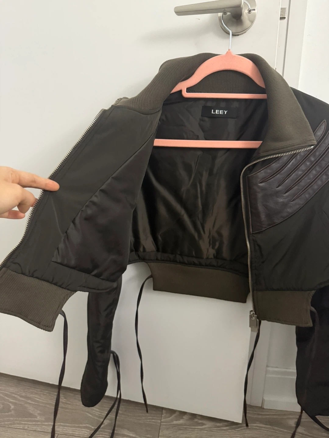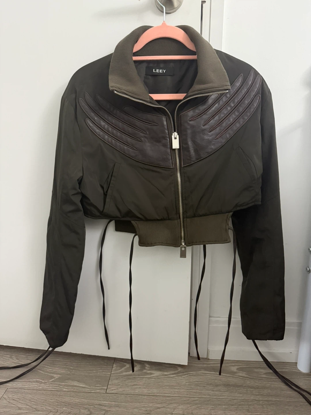 Selling a stylish LEEY cropped bomber jacket. It's a unique piece with interesting details and a modern silhouette. Perfect for adding an edgy touch to your wardrobe! #worn once
