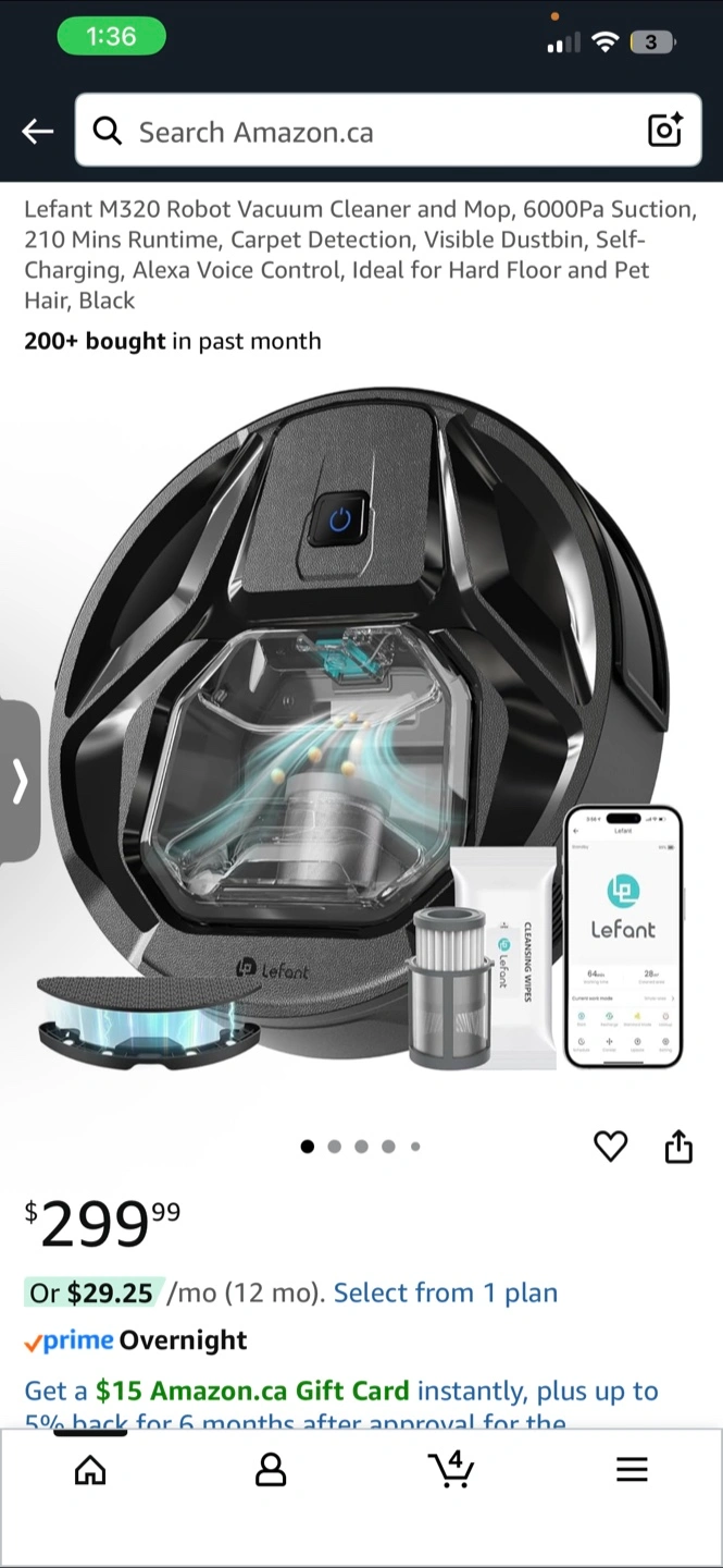 10Lefant M320 Robot Vacuum Cleaner and Mop – 6000Pa suction, 210-minute runtime, carpet detection, visible dustbin, self-charging, Alexa voice control. Ideal for hard floors and pet hair. Condition: Excellent, gently used with box and all accessories. New price: $299.99 on Amazon (see last photo). Price: $40 (firm) – great deal! Pickup in Milton – Best Rd, near 640.