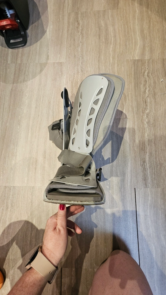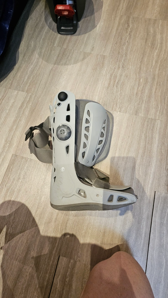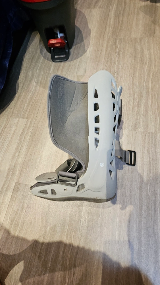 23A grey walking left boot air cast. Features straps and padding for comfort. An ideal tool for supporting your recovery.