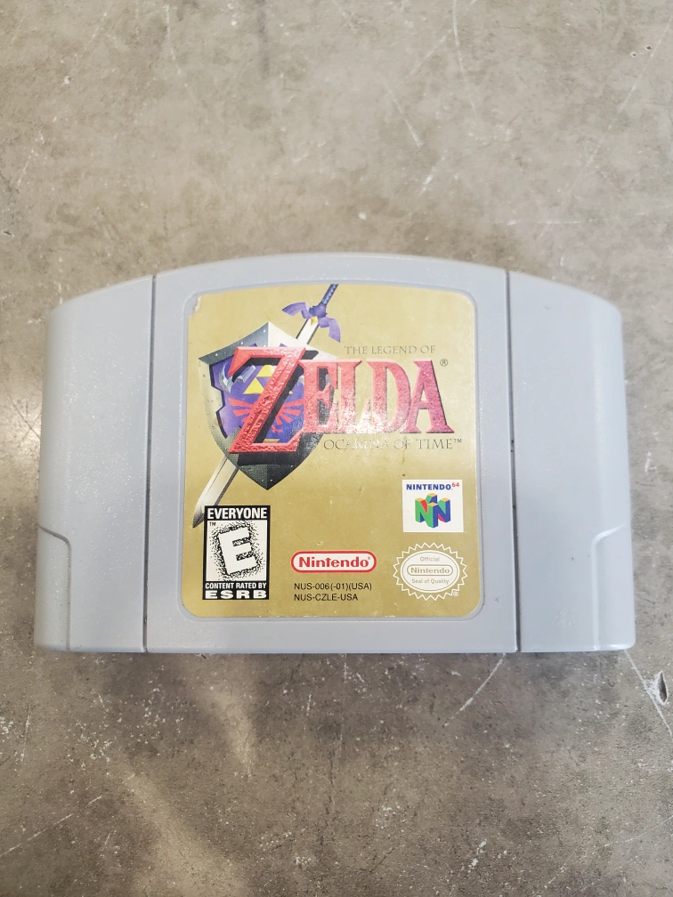 Selling a used Legend of Zelda: Ocarina of Time game cartridge for the Nintendo 64. Rated E for Everyone by ESRB. A classic game for any Nintendo fan!