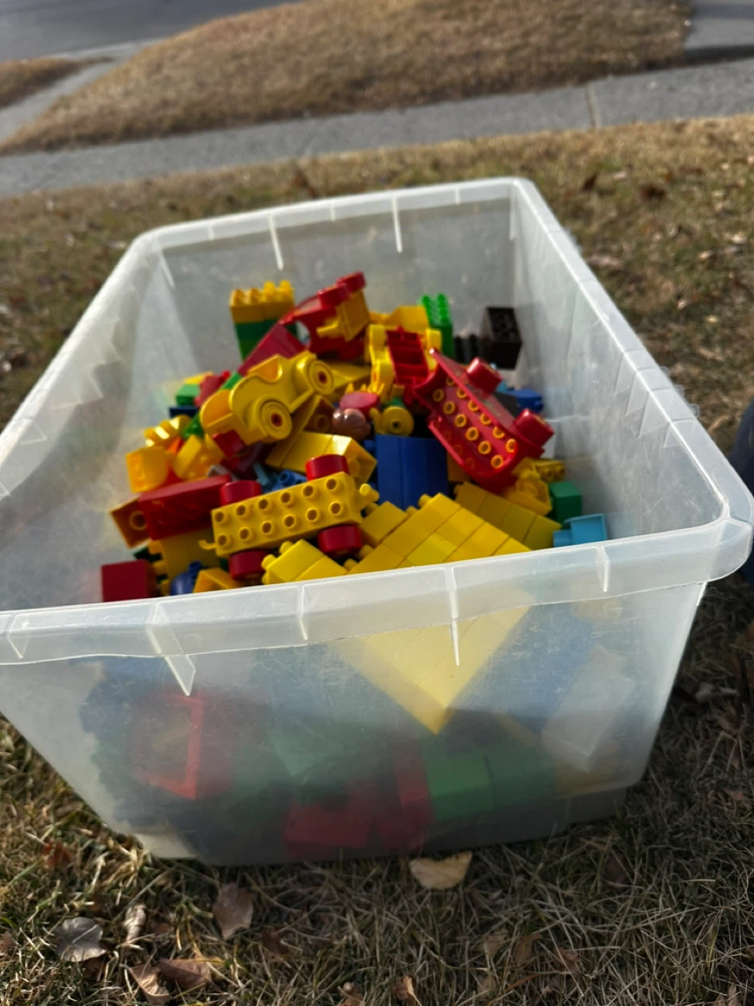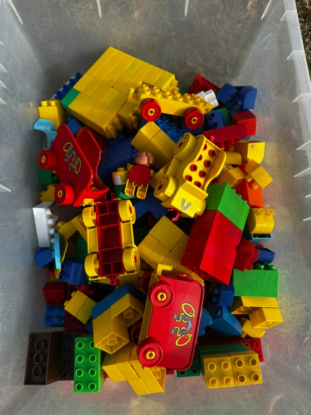 28Selling a large container of LEGO DUPLO blocks. Great for toddlers and young children to develop their motor skills and creativity. Lots of colorful pieces for building fun!