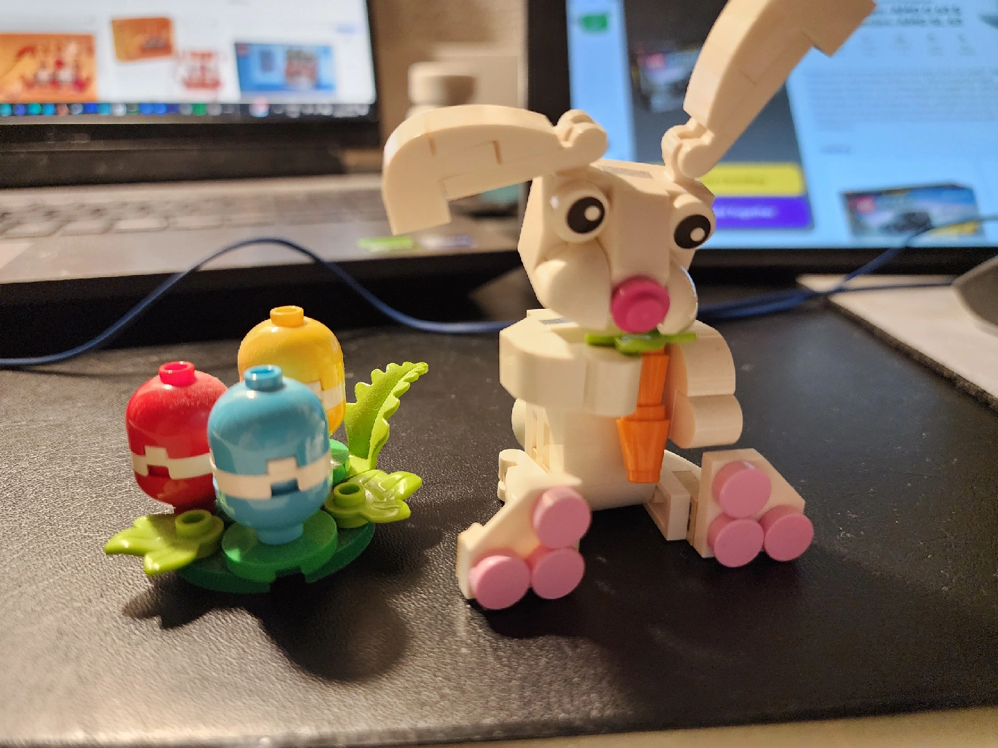 Selling a cute LEGO Easter Bunny Display Set! It's in great shape and ready to hop into your collection. This set features a charming bunny and colourful Easter eggs, perfect for adding a touch of spring to your home It is a completed lego set.