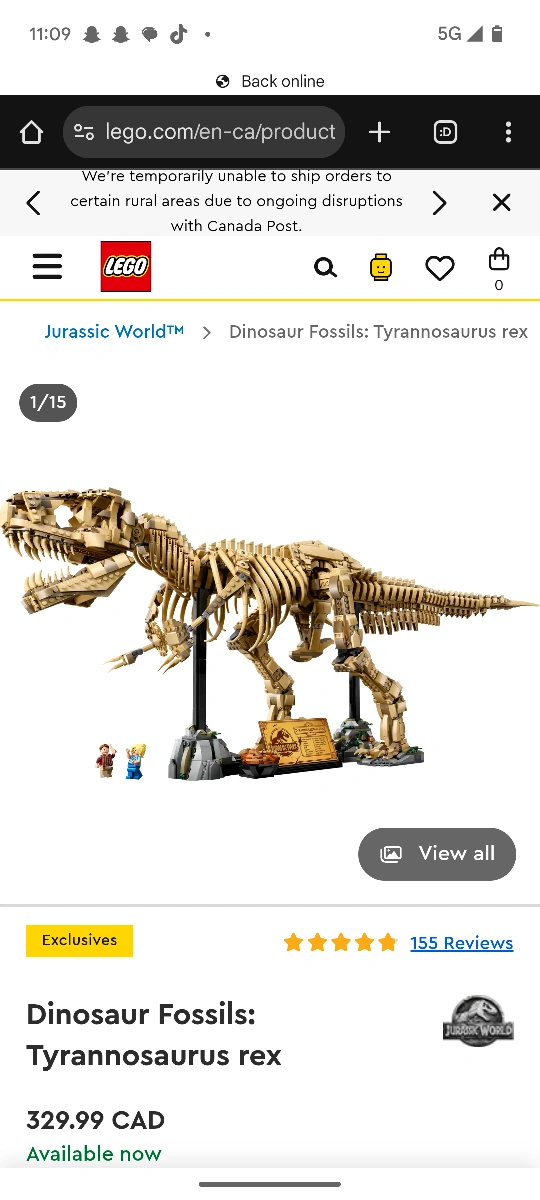 5Selling a LEGO Jurassic World Dinosaur Fossils: Tyrannosaurus Rex set! It's an exclusive set that originally retailed for $329.99 CAD. Perfect for any LEGO or dinosaur enthusiast!