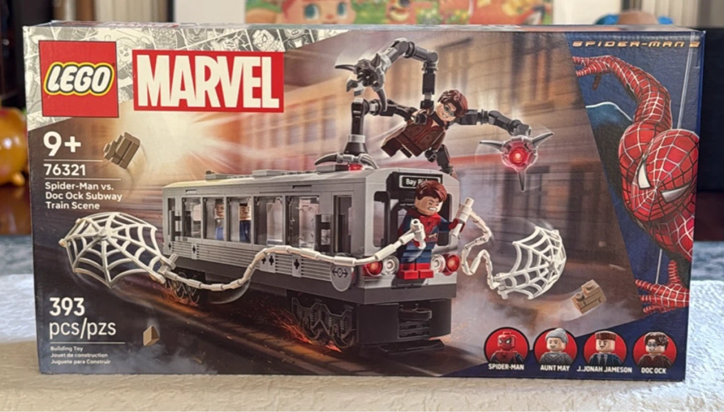 I'm selling a brand new and sealed LEGO Marvel Spider-Man vs. Doc Ock Subway Train Scene set (76321)! This set is perfect for fans of Spider-Man and LEGO. It includes 393 pieces to build an exciting scene from Spider-Man 2. Recommended for ages 9+